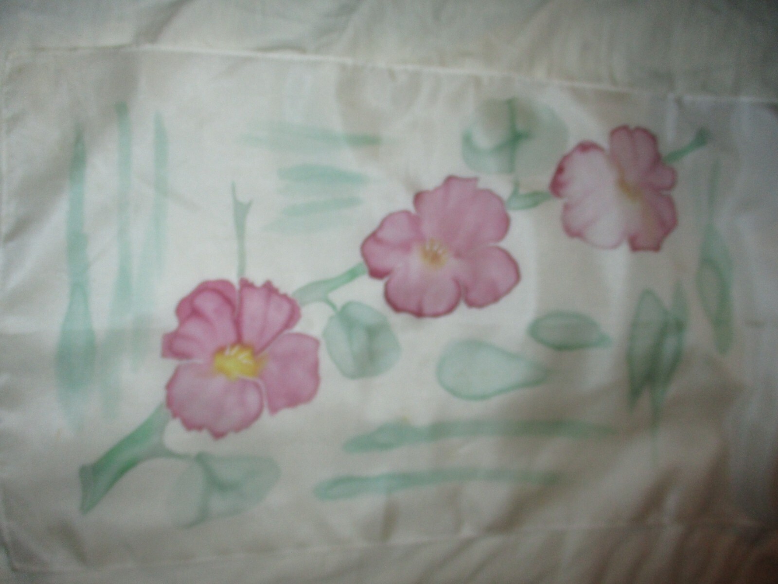 как выглядит Artist Signed Hand Painted Pink Flowers Floral 100 Silk Oblong Scarf 58" Brazil фото