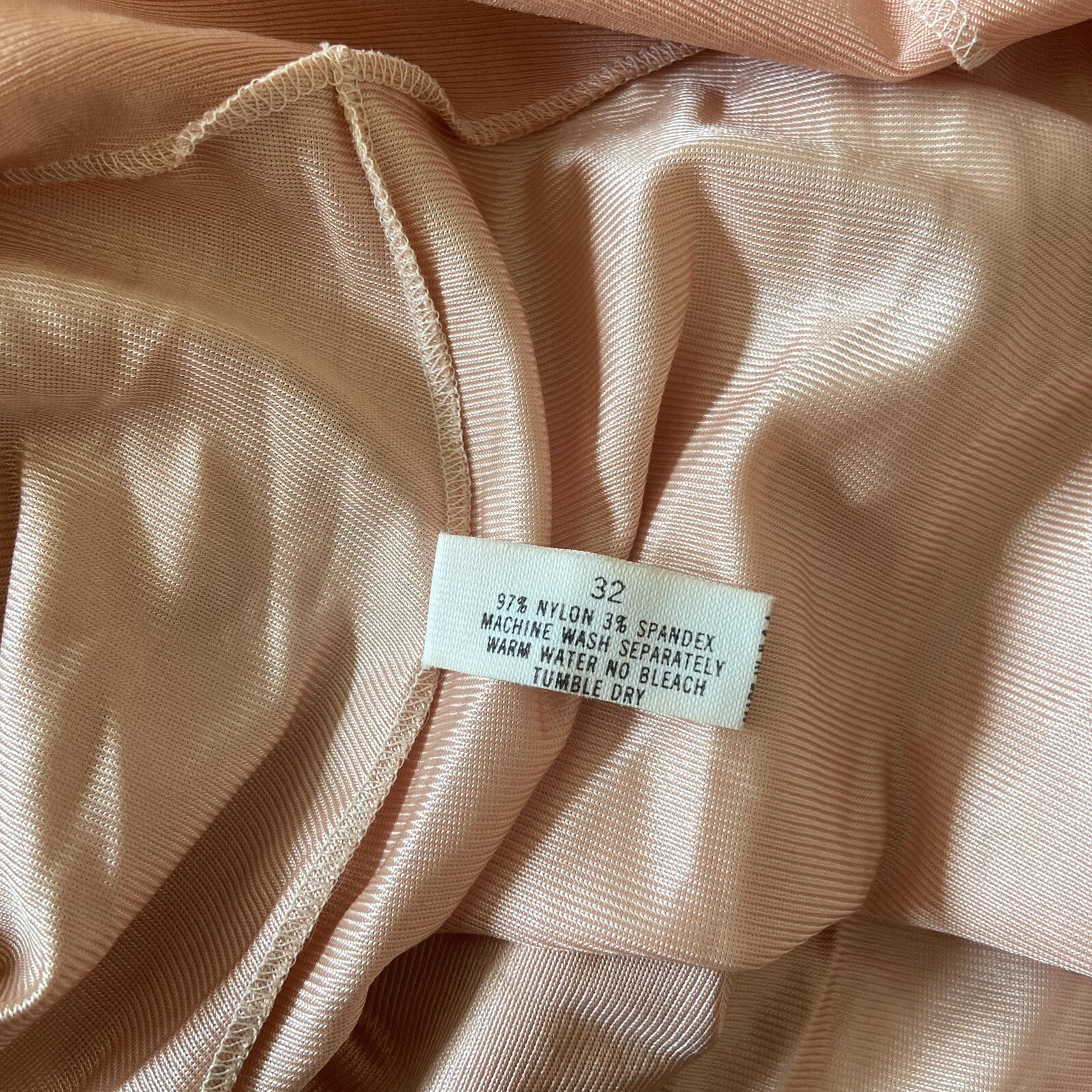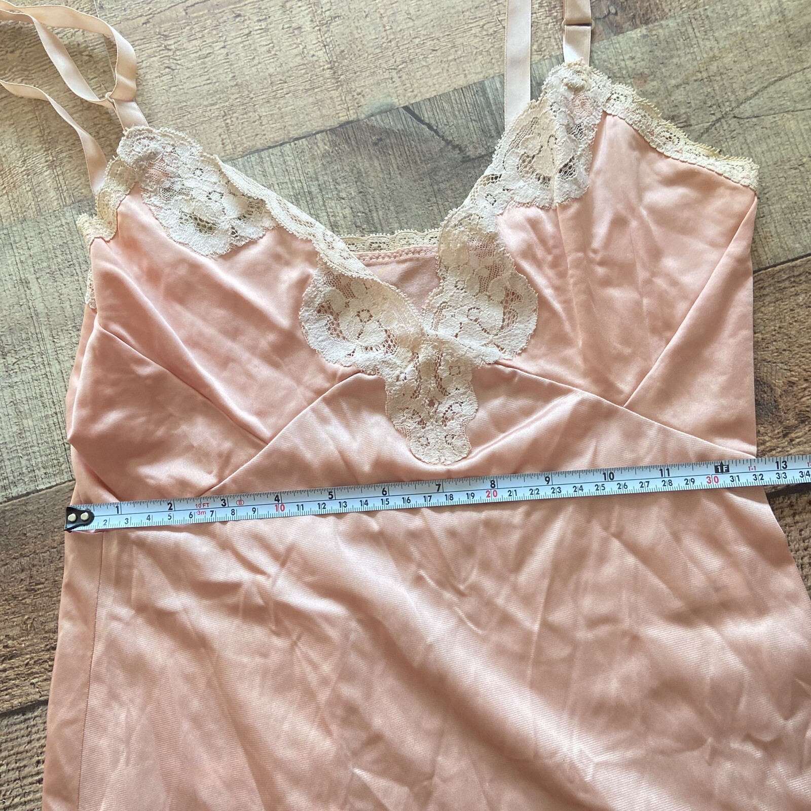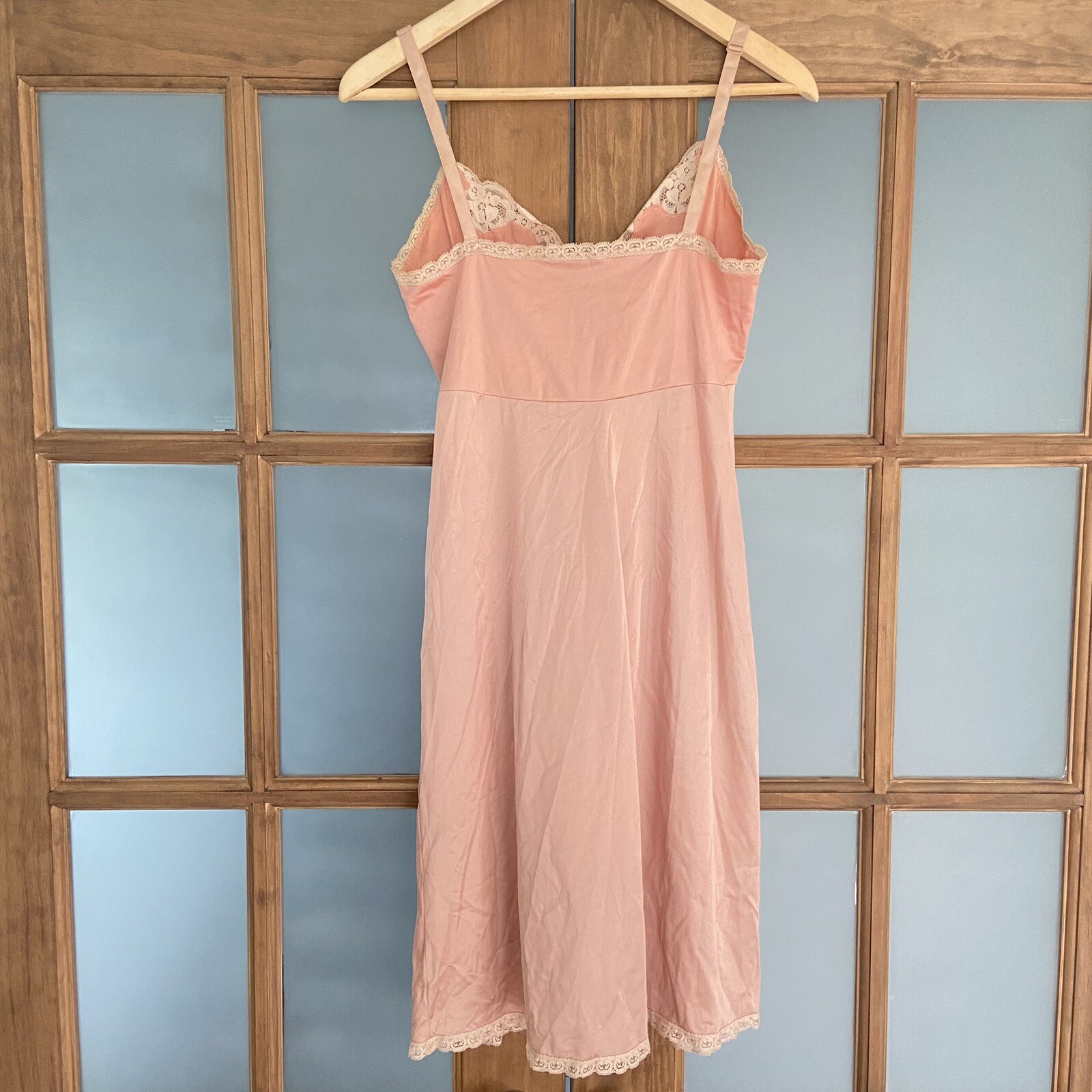 как выглядит Vintage Shadowline Size 32 Nightgown Slip Nylon Blush Adj Strap Lace Hem Slit фото