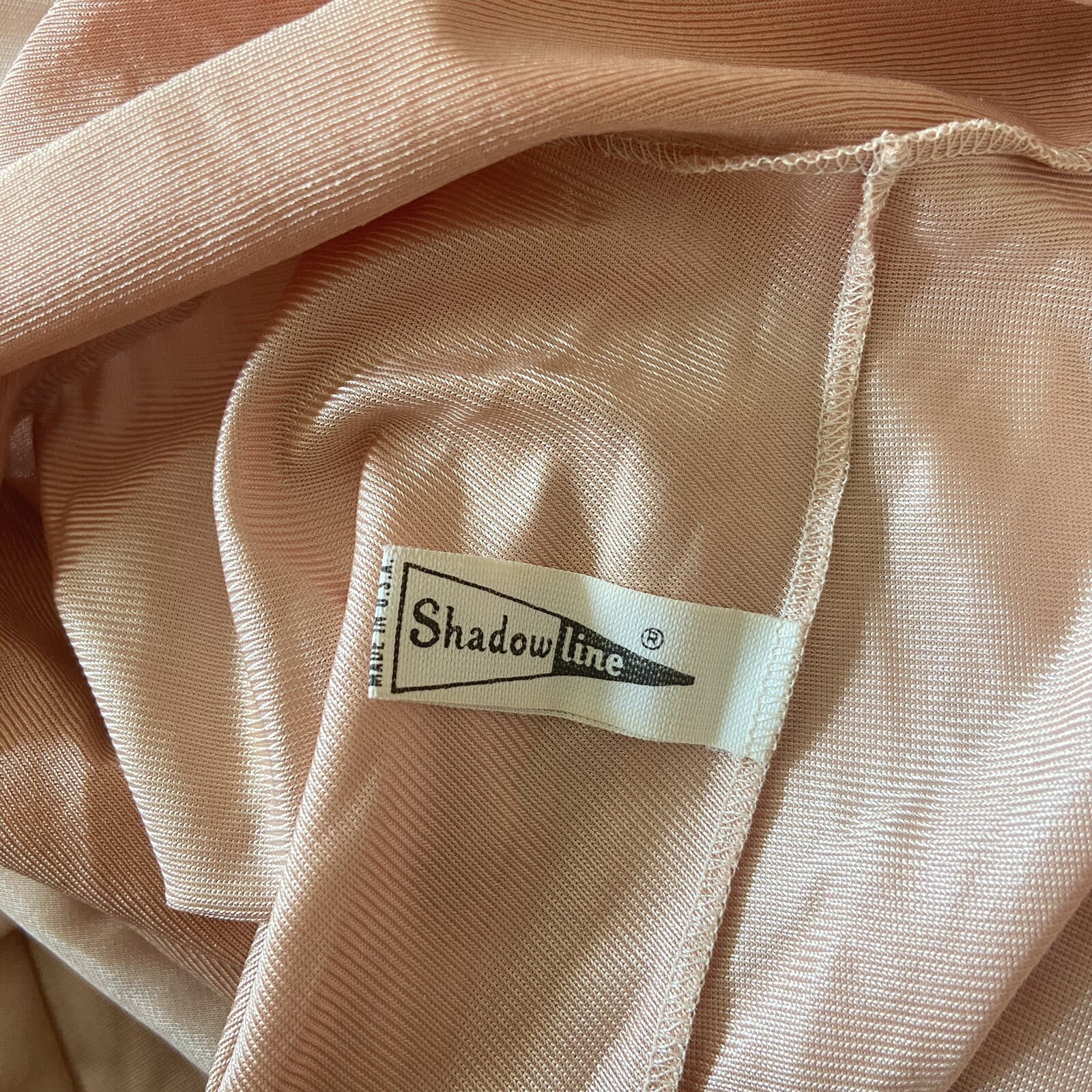 Vintage Shadowline Size 32 Nightgown Slip Nylon Blush Adj Strap Lace Hem Slit