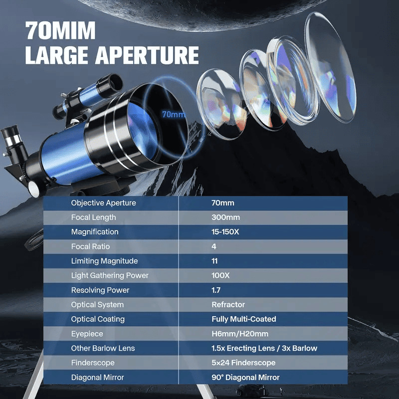 Objective Lens Diameter: 70.0
