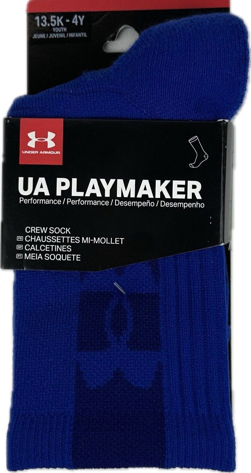 Under Armour Playmaker Kids Blue Crew Polyester UA Performance Socks Sz 13.5K-4Y