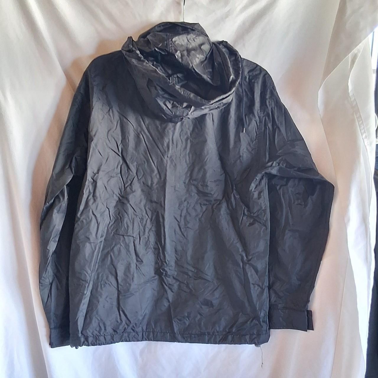как выглядит lands end Black windbreaker rain jacket with hood, pockets, and adjustable waist фото