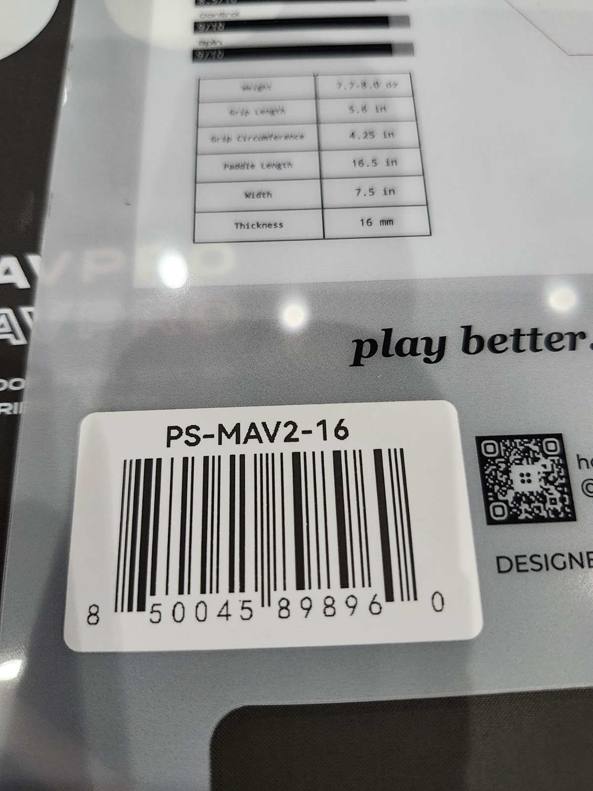 Holbrook Mav Pro 2.0 Pickleball Paddle with 16mm Thickness - Black