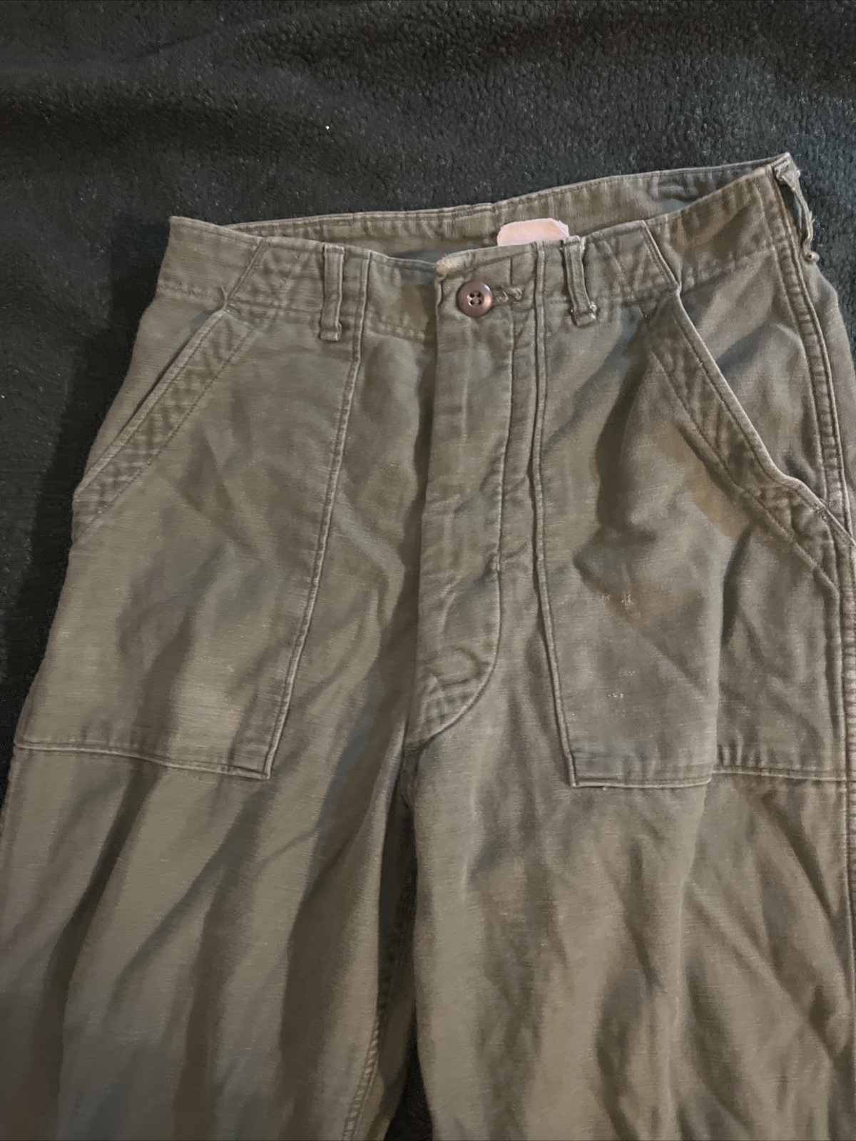 как выглядит VTG Military Trousers Green Sateen 60 s 70s Baker Pants Fatigue 27 tag 30 фото