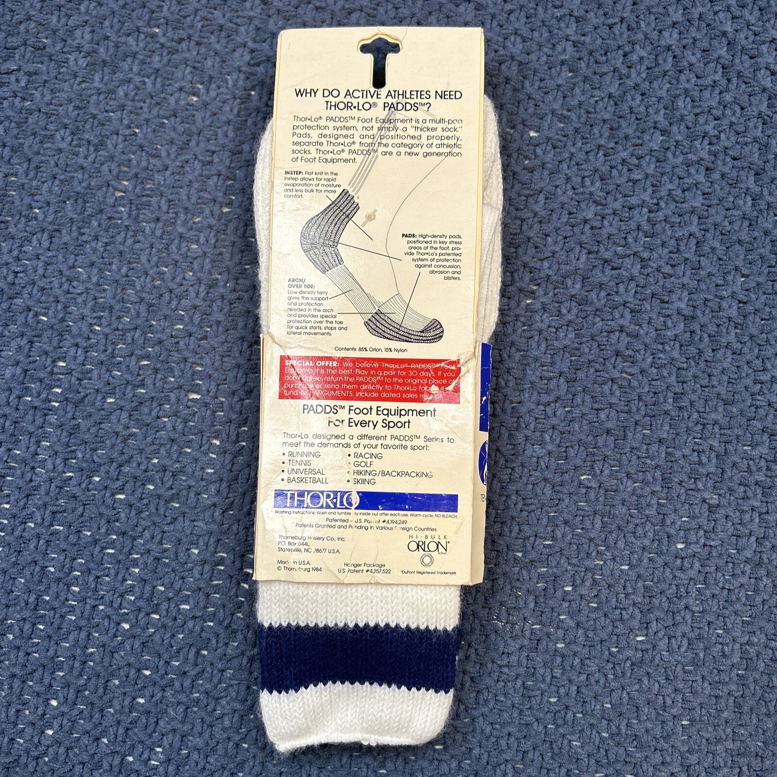 VTG Socks 10-13 Thorlo Padds Tennis Crew Orlon Acrylic NOS 1990's TX-13 USA Navy