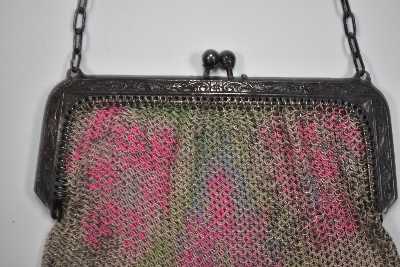 Antique Vintage Art Deco Pink Yellow Blue Metal Mesh Flapper Purse