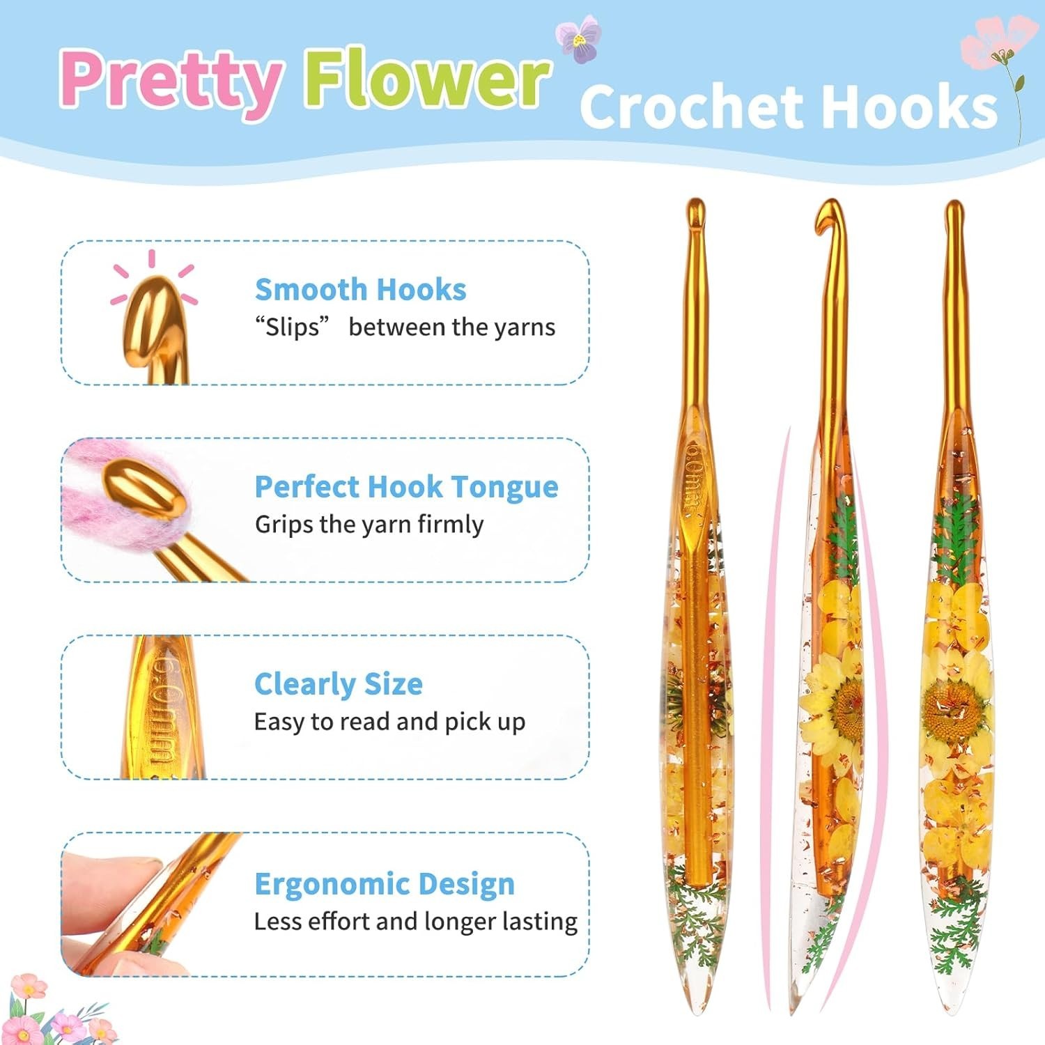 как выглядит Aguja de crochet ergon mica de 6 mm con mangos de pl stico con motivos florales фото