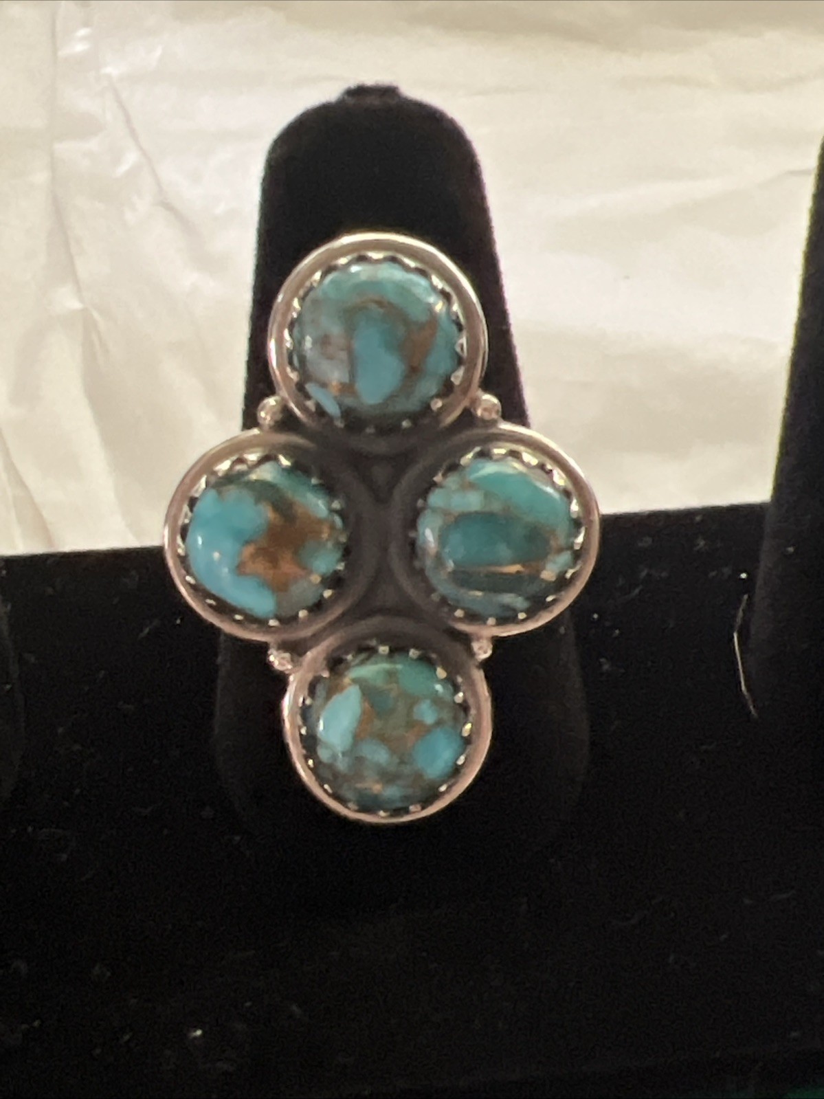 STERLING SILVER Southwestern Copper Turquoise RING 925 Adjustable