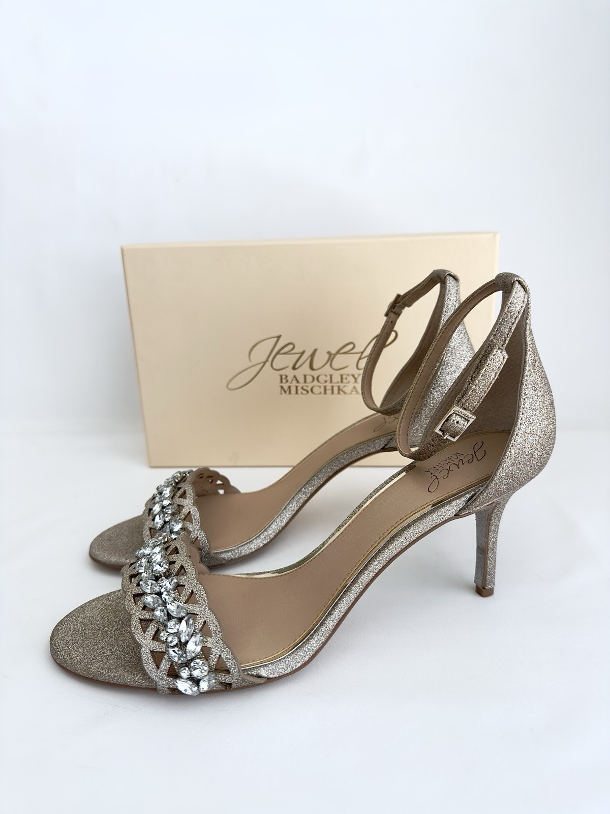 JEWEL By Badgley Mischka Kirsten Embellished Laser Cut Glitter Sandals Gold 11M