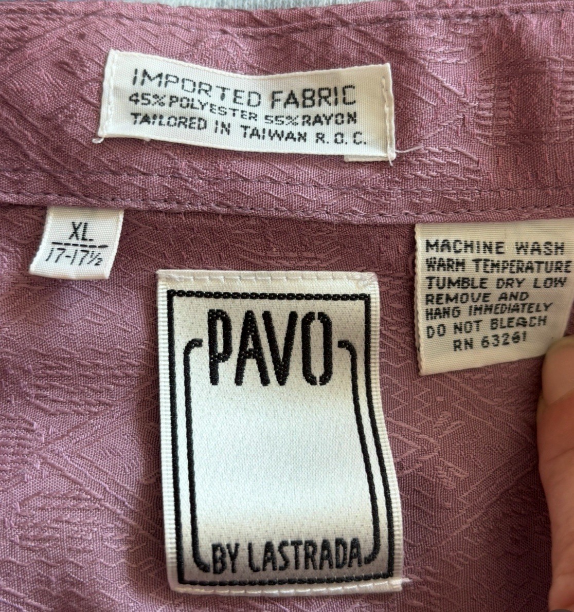80s 90s Vintage Pavo XL Mauve Geometric Jacquard Rayon Blend Button Up Shirt