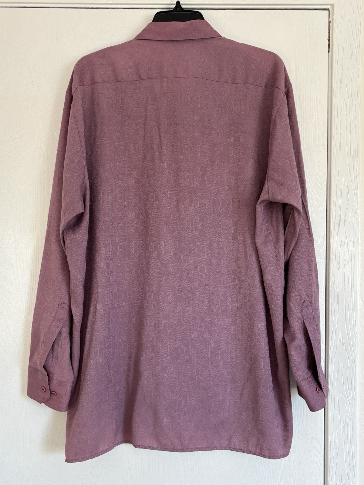 как выглядит 80s 90s Vintage Pavo XL Mauve Geometric Jacquard Rayon Blend Button Up Shirt фото