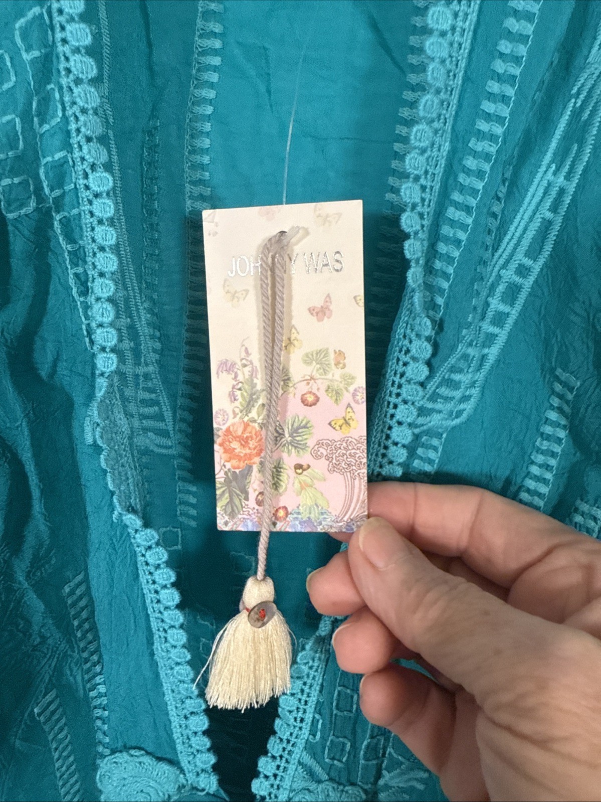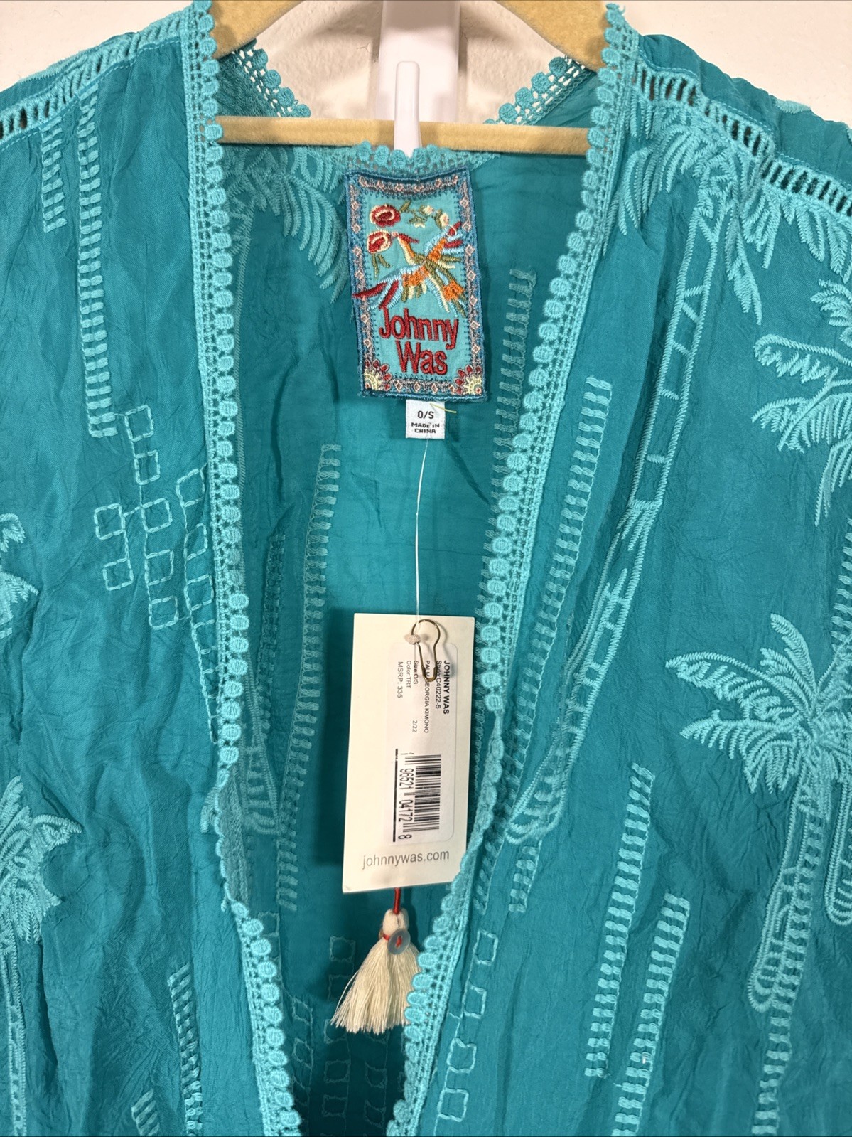 Johnny Was Palm Georgia Long Kimono O/S NWT Aqua Retail 373.00 C2