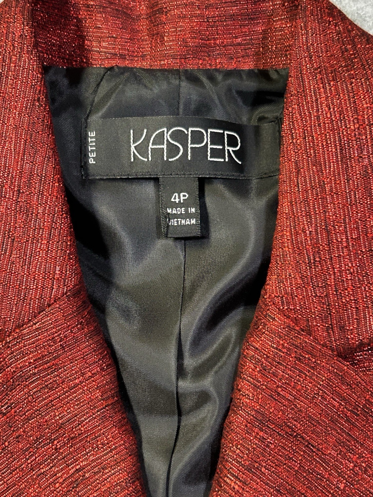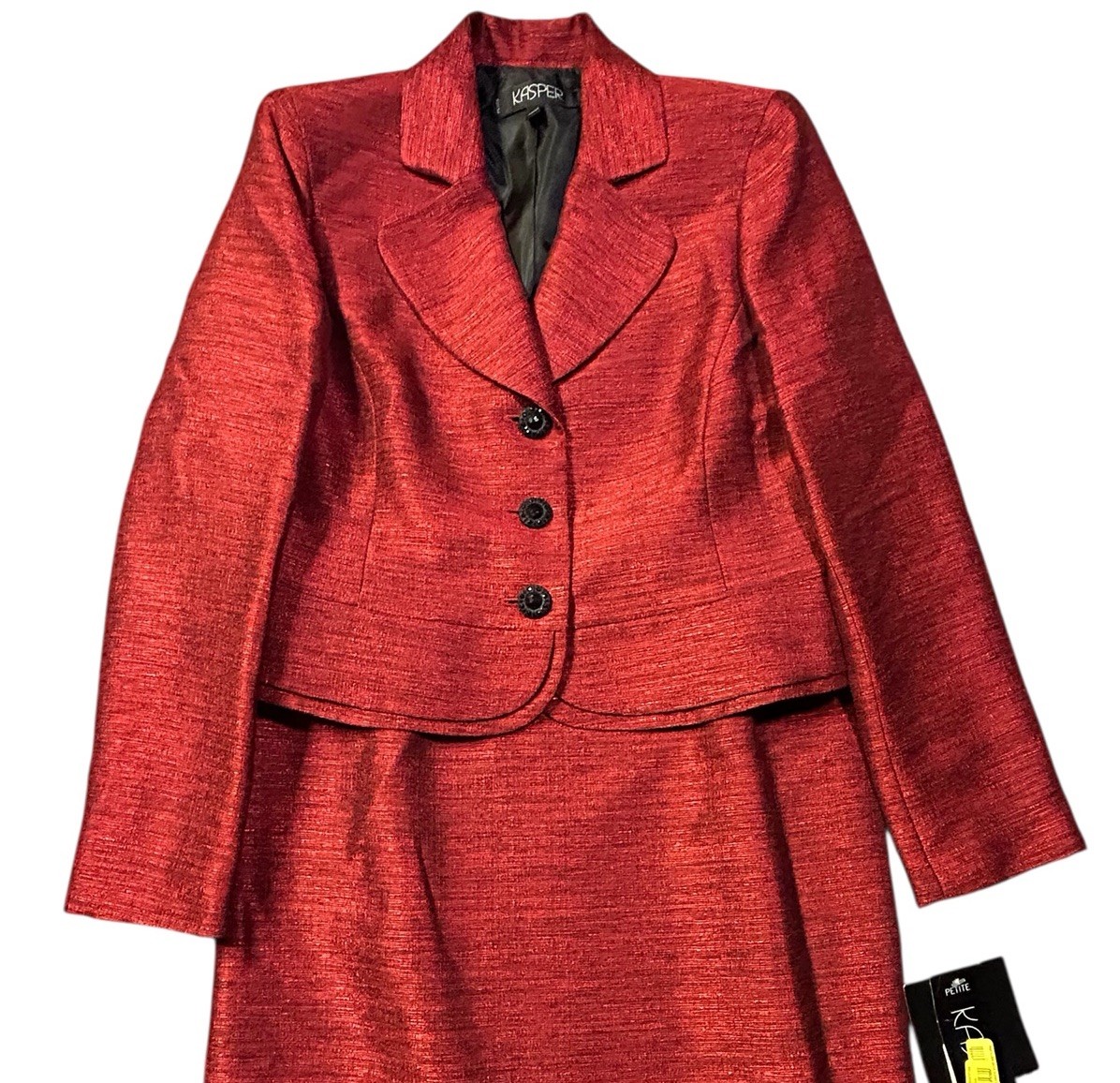 NWT Kasper Women s Scarlet Cocktail 2 Piece Skirt Suit Size 4P Festive Shine