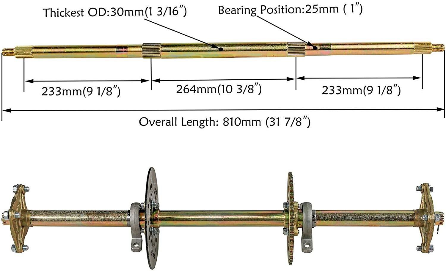 32 Go kart Rear Axle Kit 428 Sprocket Hub 6 Wheels for ATV Quad Golf Cart Bugg
