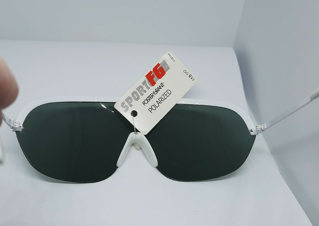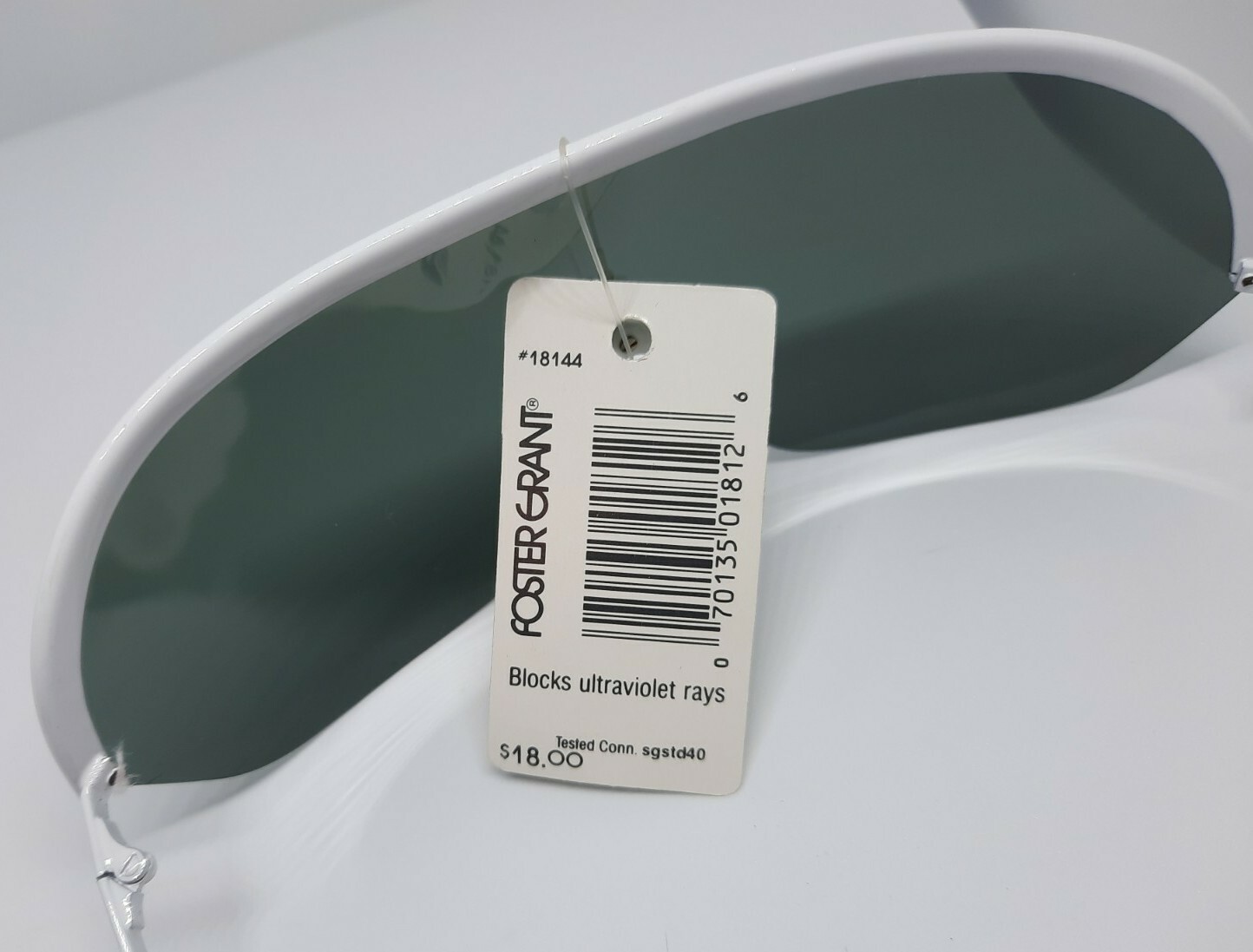 Vintage 80's Foster Grant White Wrap Metal Plastic Frame Sunglasses with Tag