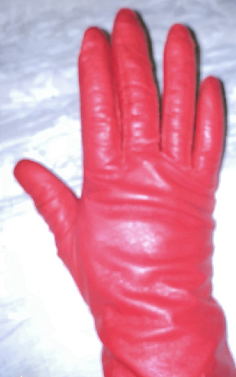 как выглядит Vintage Bright Red Leather Gloves Woman s Small Retro Rockabilly Pinup Fitted фото