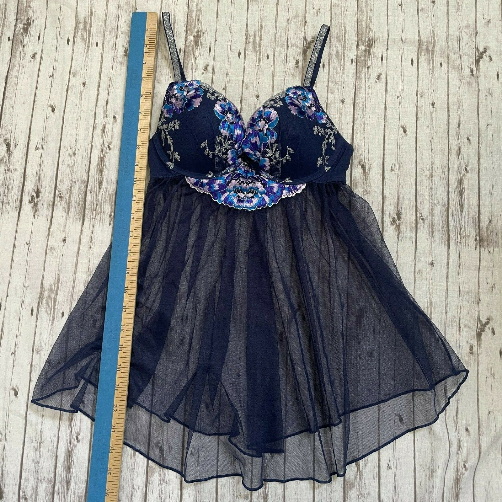 как выглядит Victorias Secret Womens Sz 34B Babydoll Blue Sheer Lace Lingerie Negligee Floral фото