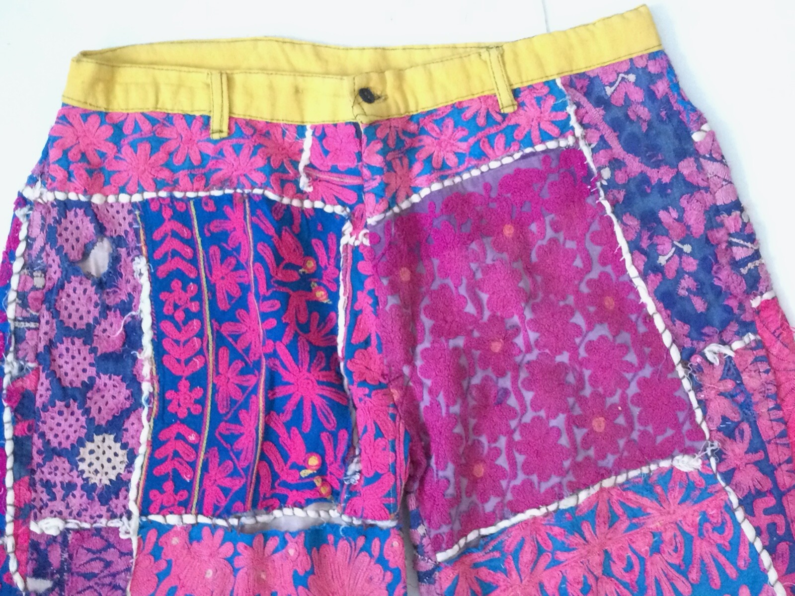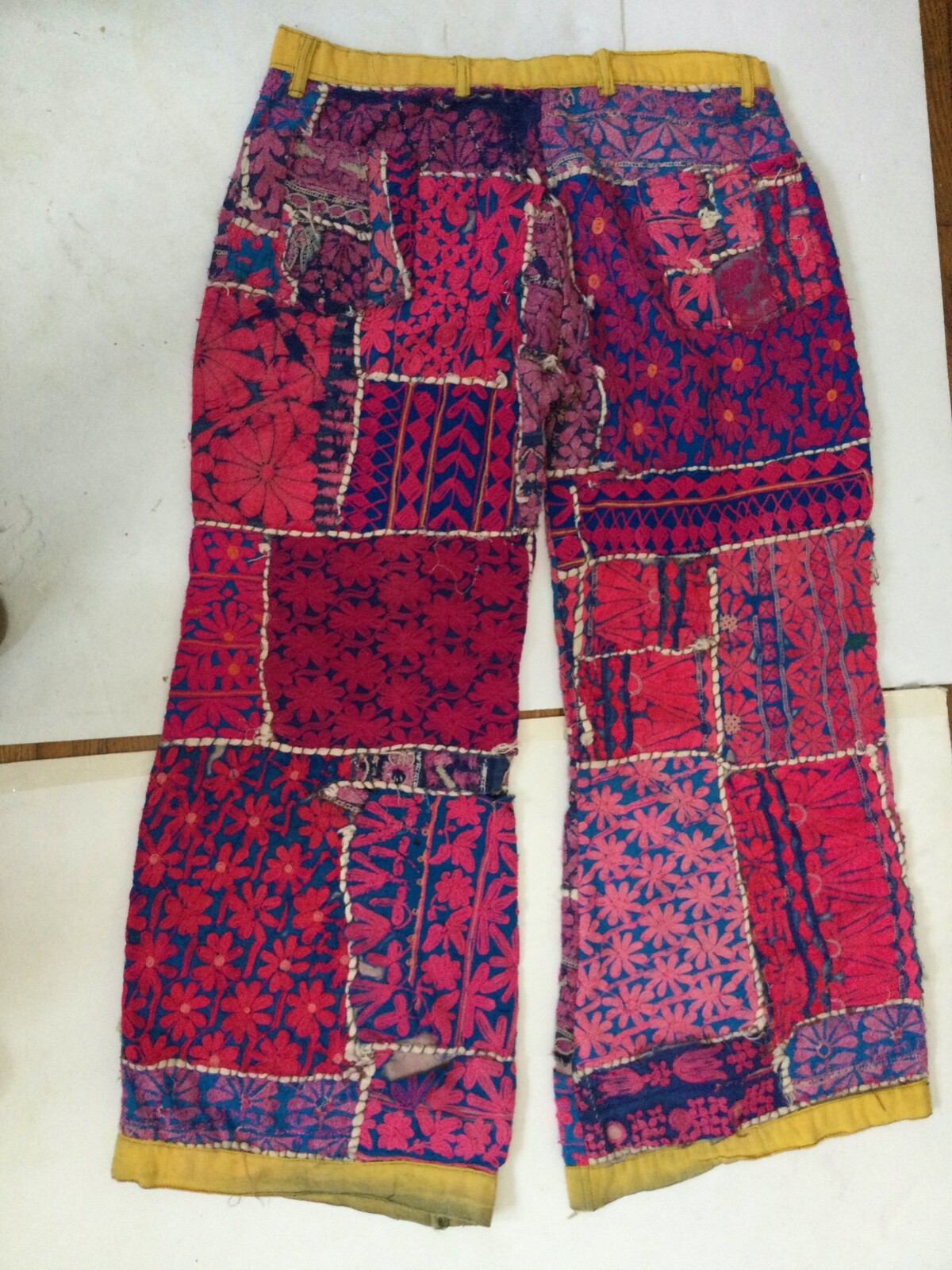 • Hippie Pants 1960'-70's HandMade Embroidered Stitched Vibrant Psychedelic Colors
