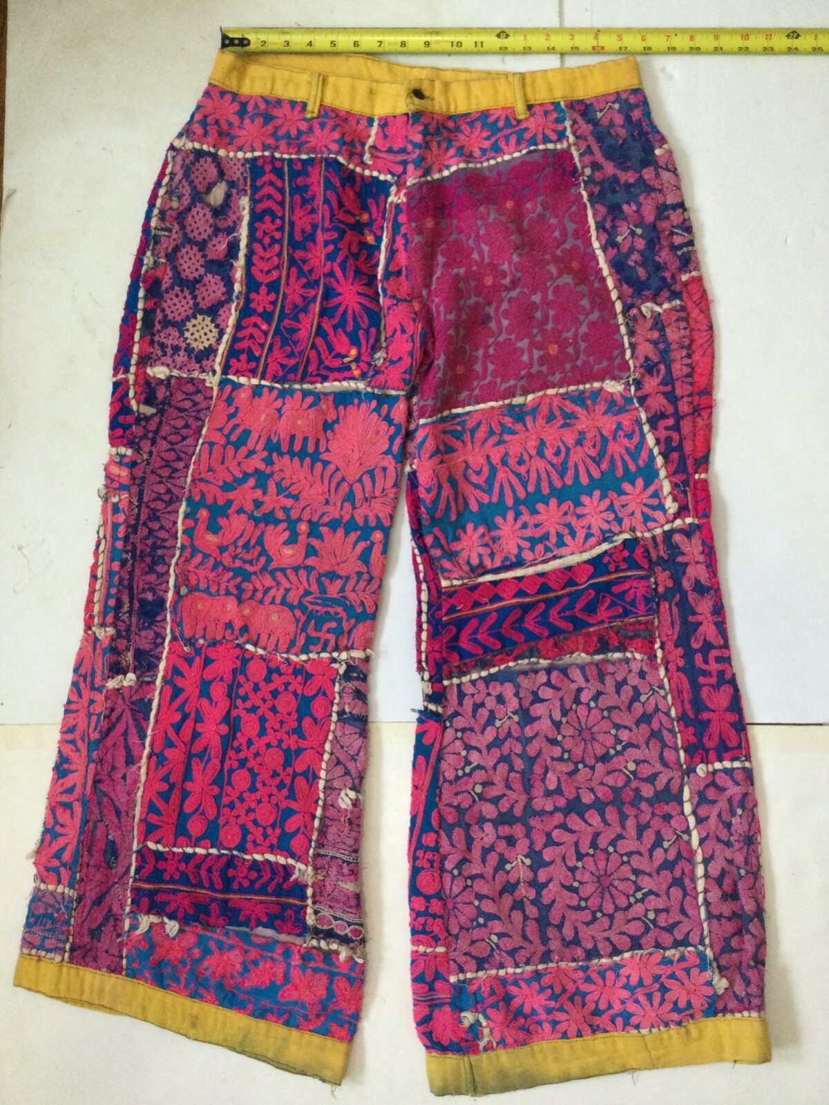 как выглядит Hippie Pants 1960-70s HandMade Embroidered Stitched Vibrant Psychedelic Colors фото