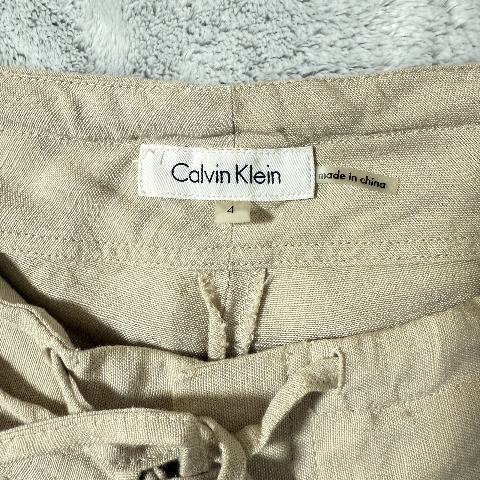 как выглядит Calvin Klein Women s Size 4 Beige Wide Leg Drawstring Waist Linen Blend Pants фото