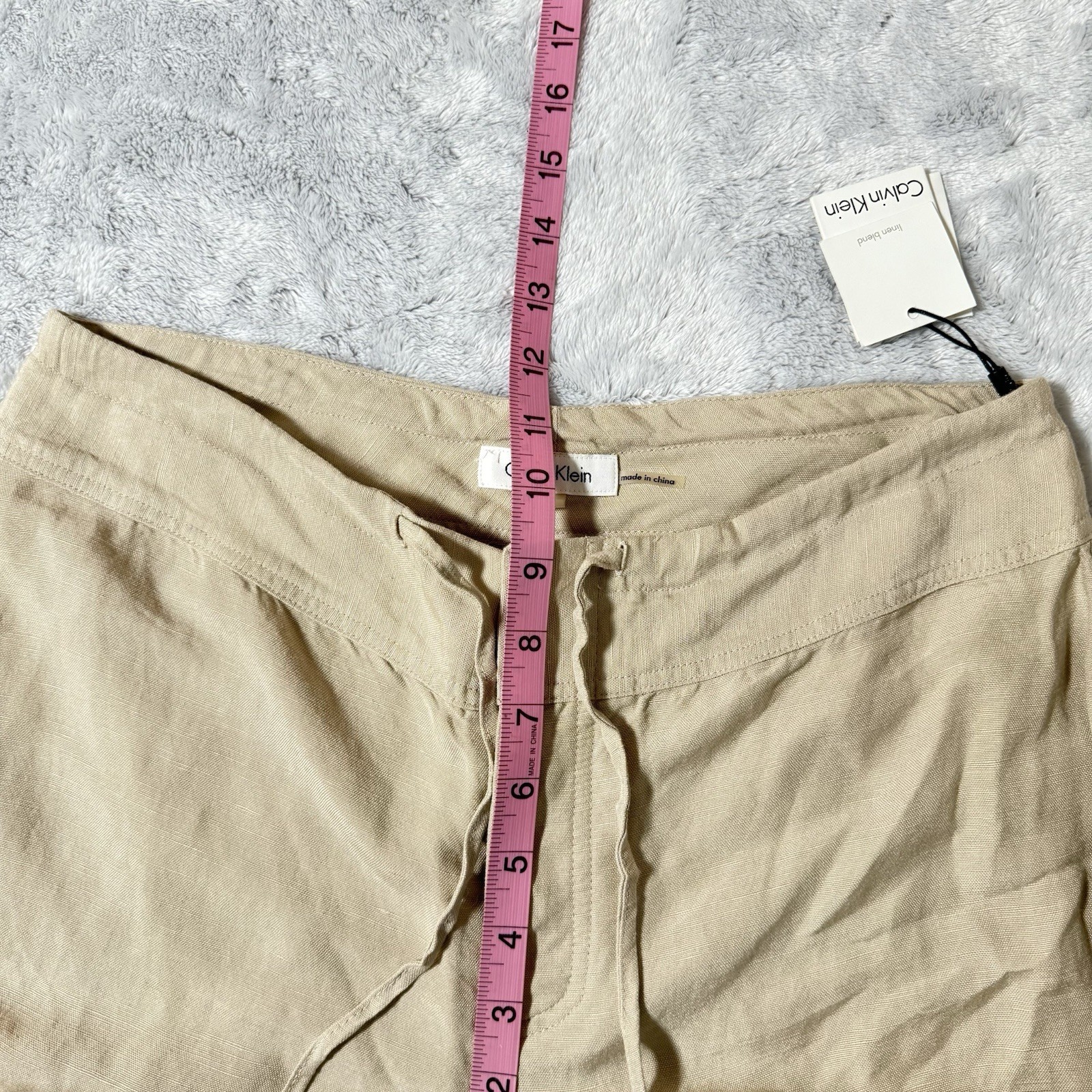 Calvin Klein Women s Size 4 Beige Wide Leg Drawstring Waist Linen Blend Pants