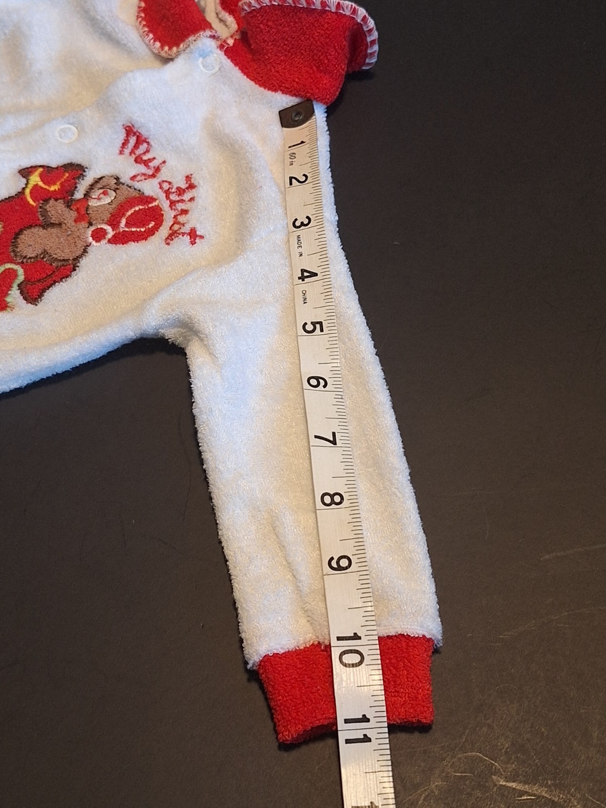 как выглядит VTG My First Christmas Baby Sleeper Terrycloth Sz 18-23 Pounds Bear On Horse фото