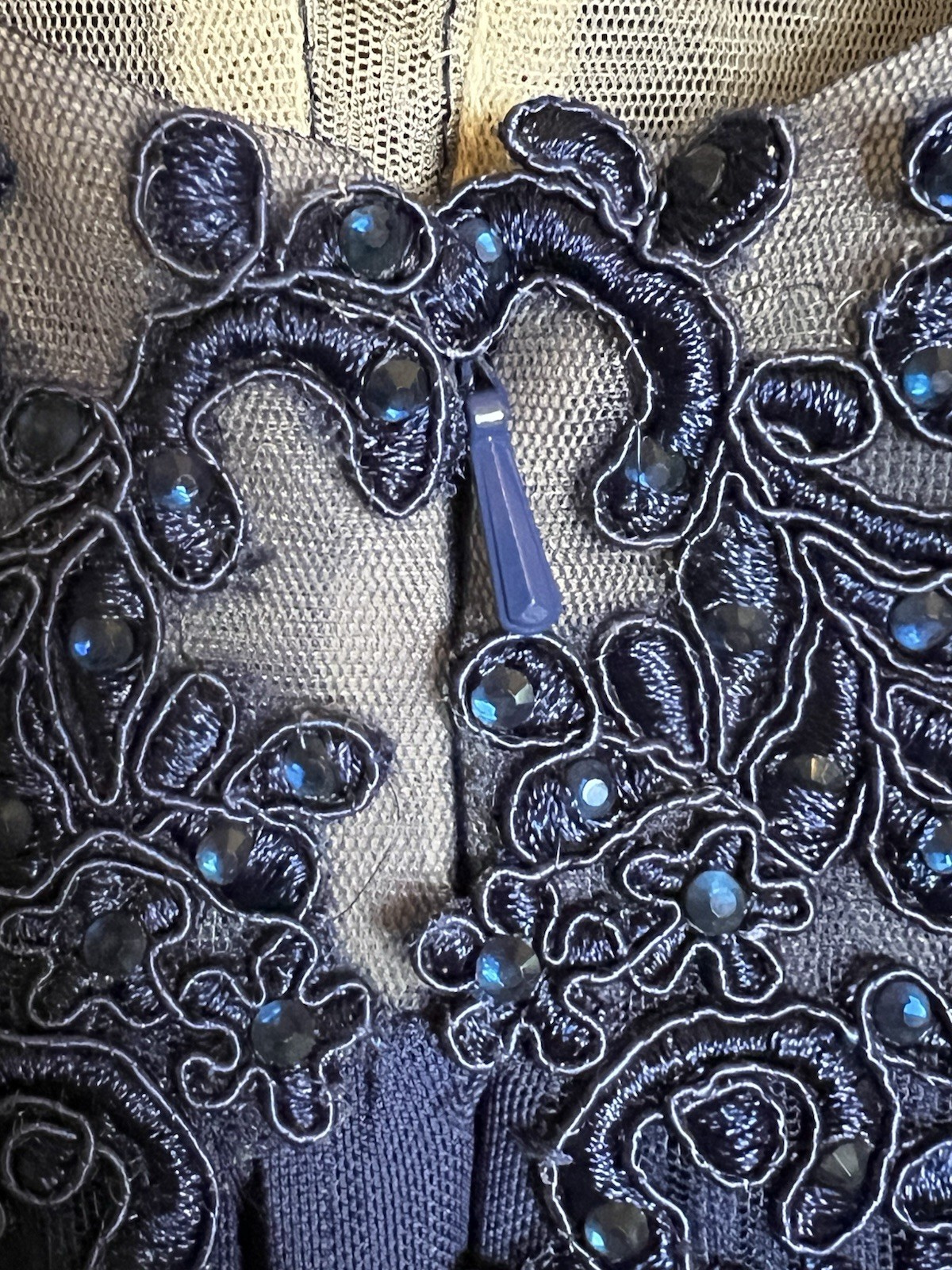 как выглядит Sherri Hill Navy Blue Lace Chiffon Elegant Ball Gown Prom Dress Crystals Size 0 фото