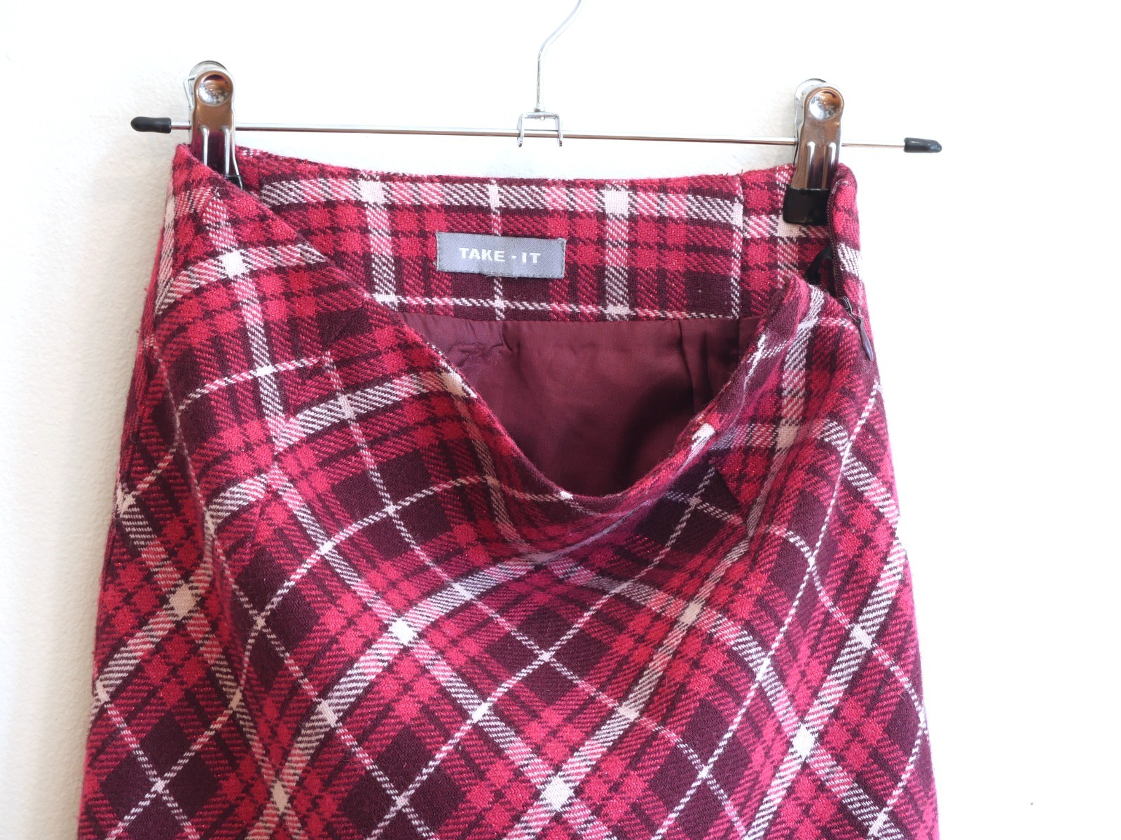 как выглядит Plaid Womens A-line Skirt, Lined, Mid-Length XS, Preppy Clueless,Pink, Burgundy фото