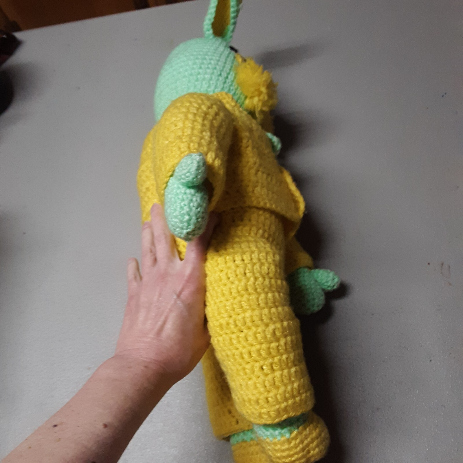 как выглядит Handmade Crocheted Easter Bunny 19" Plush Doll Yellow Green Removable Outfit фото