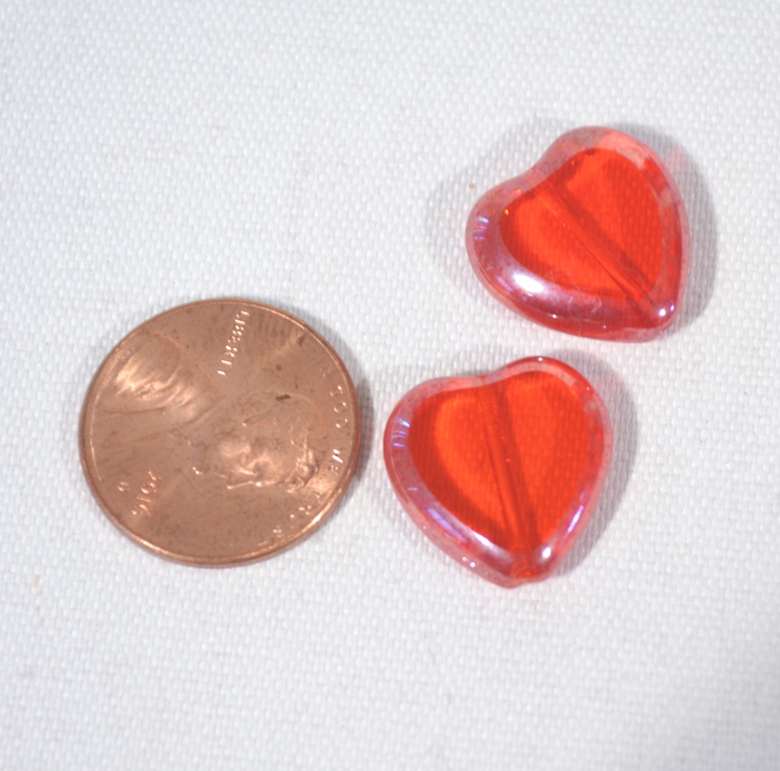 NEW ASSORTED CZECH RED GLASS HEART BEADS, 120 PC