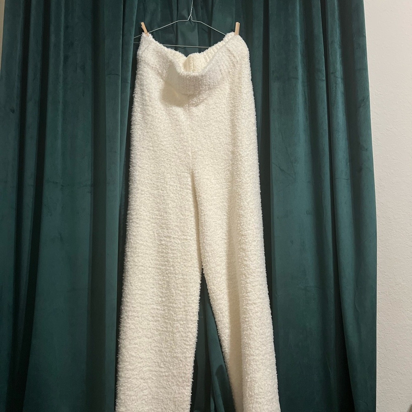 как выглядит SKIMS Cozy Knit Bone/Ivory Wide Leg Plush Pants фото