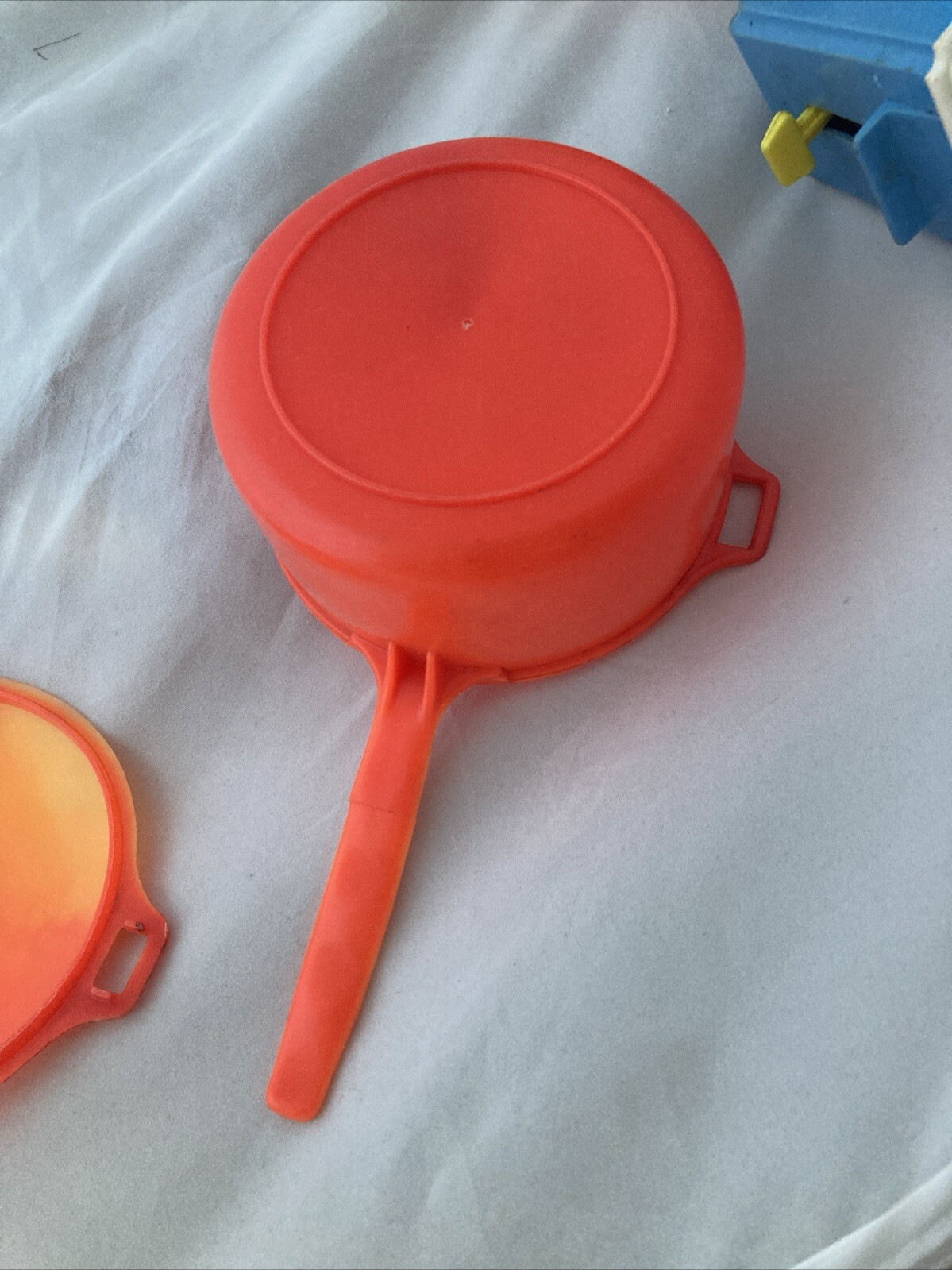 как выглядит 1980s KIDDY-MATIC Hand Mixer Pots pan Toaster CHILTON-GLOBE Play Kitchen Toys 3p фото