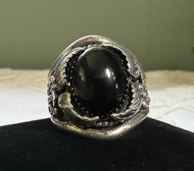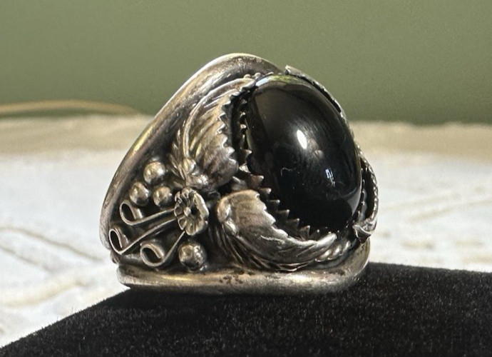 Sterling Silver Intricately Designed With Onyx Ring