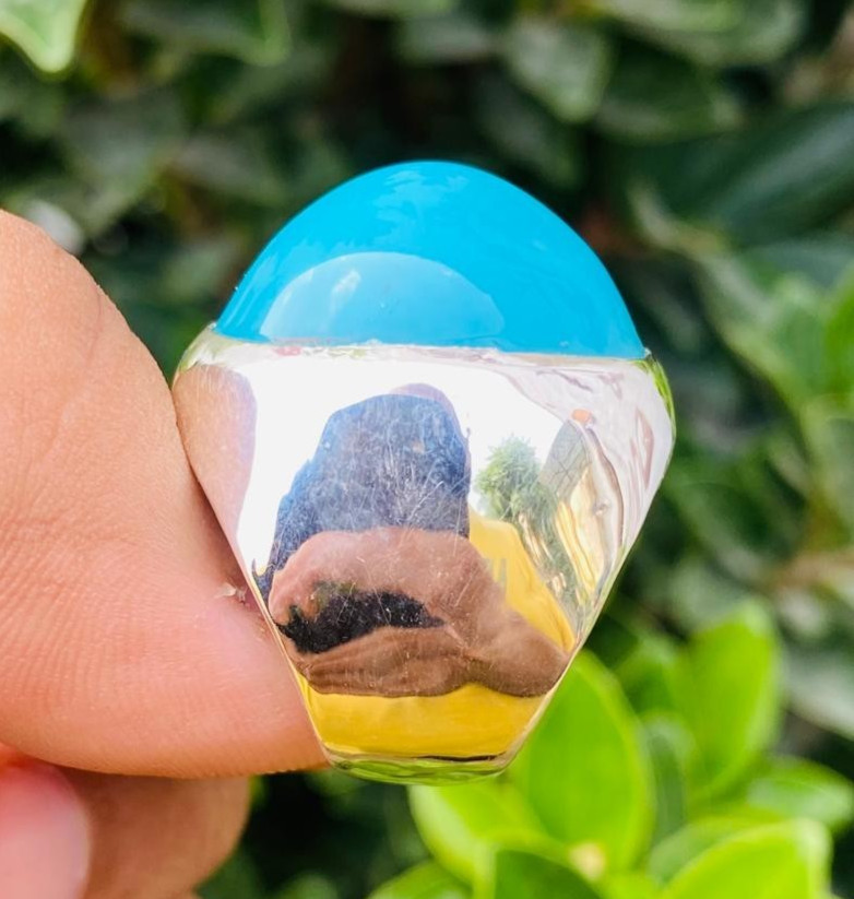 как выглядит BIG Feroza Stone Genuine Turquoise Ring Silver 925 Sterling Ring Nishapur Feroza фото