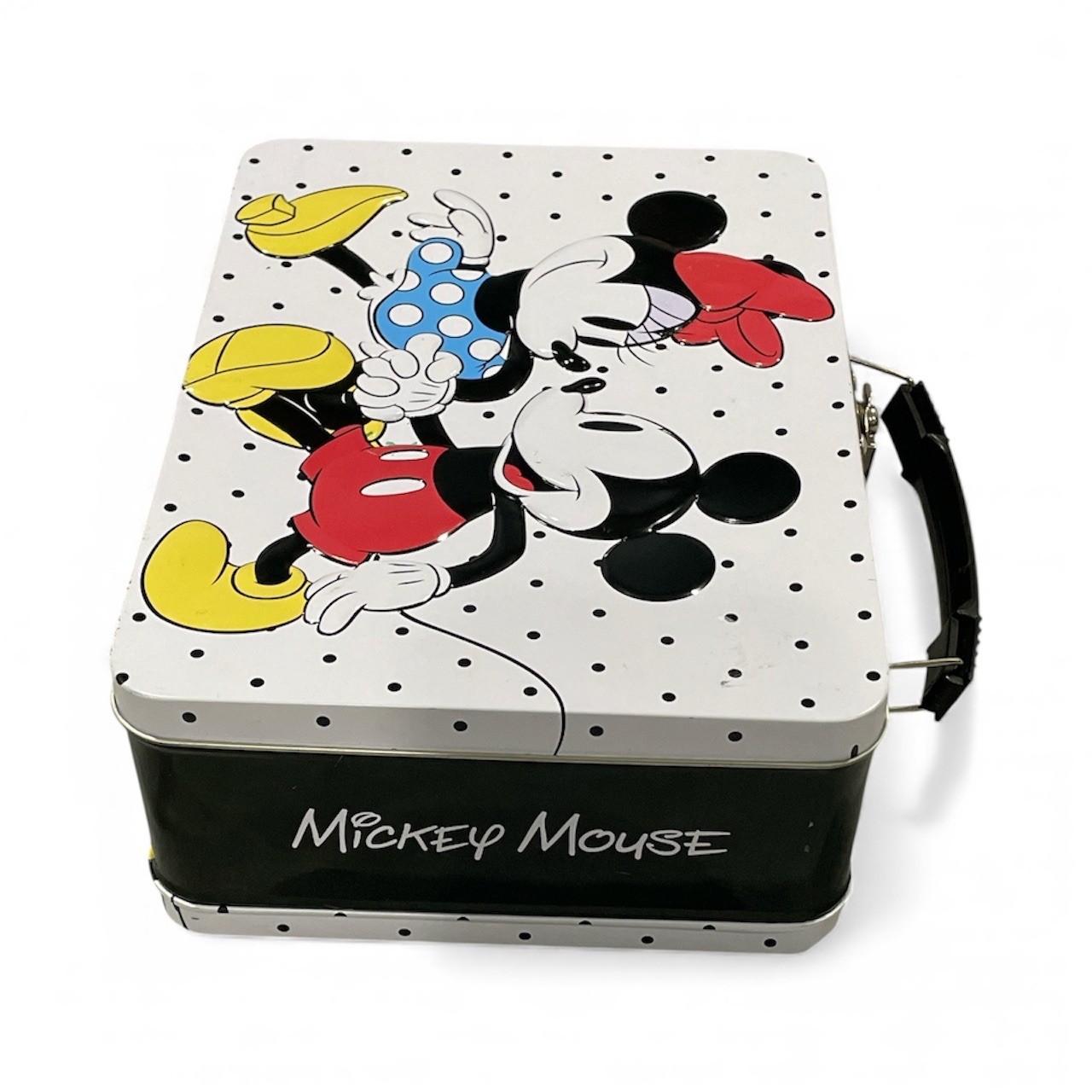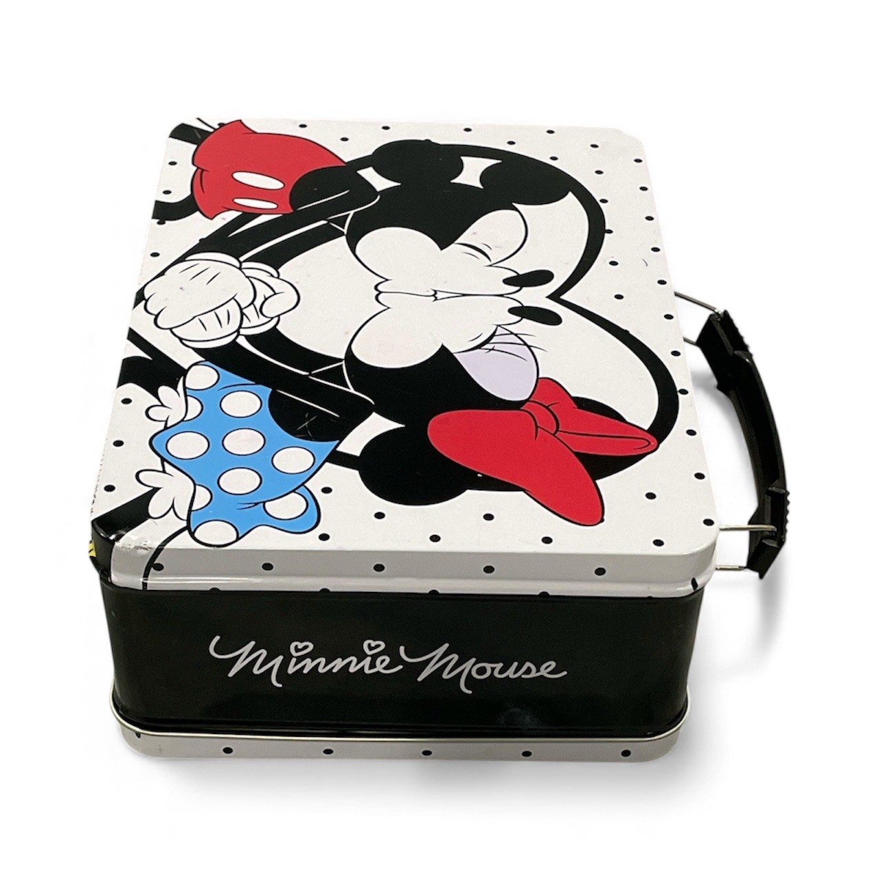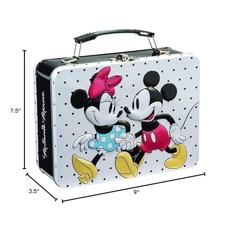 Mickey and Minnie Mouse Metal Lunch Box Tin Tote Disney Polka Dot