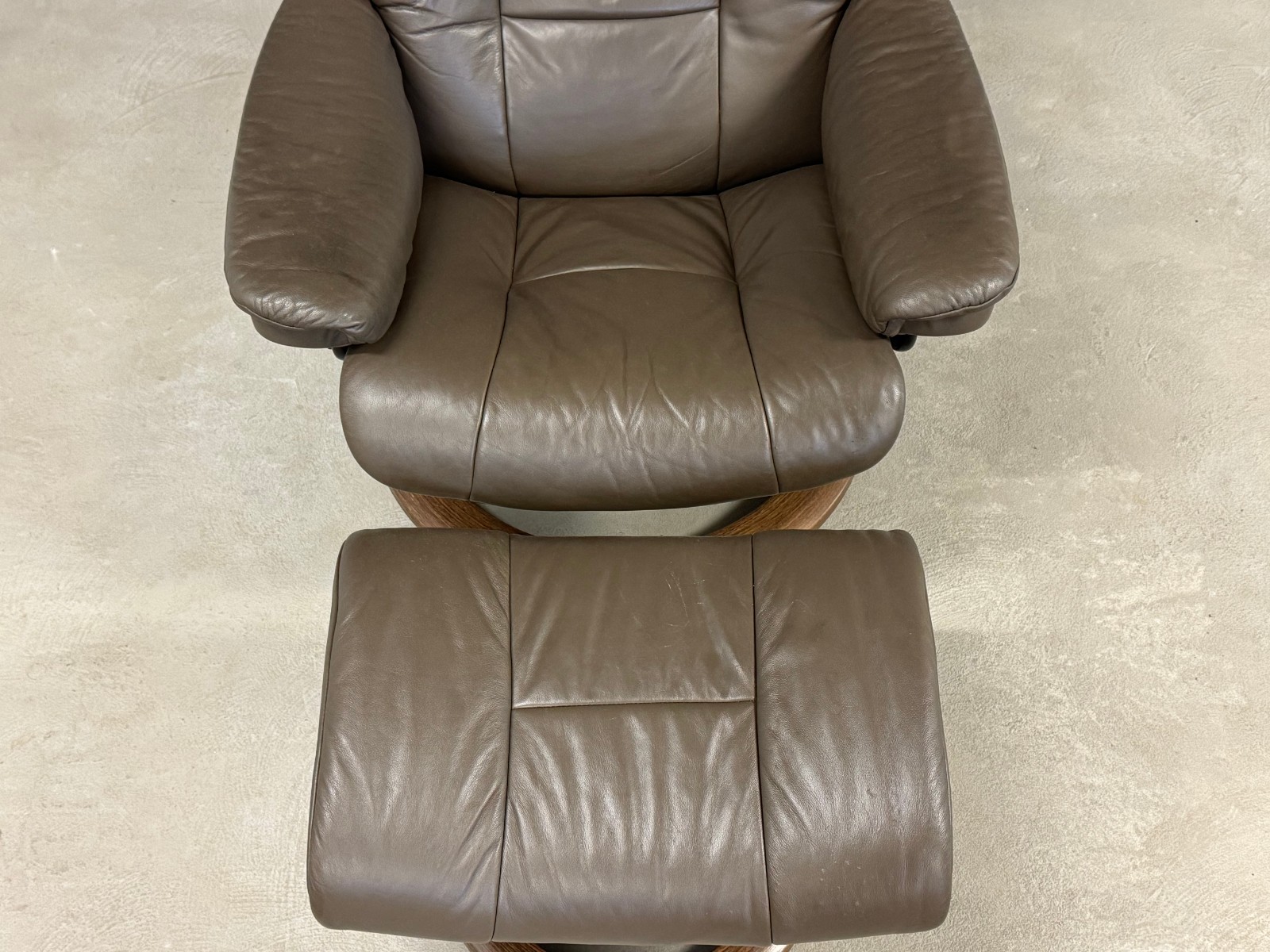 как выглядит Brown Leather Ekornes Stressless Recliner and Ottoman фото