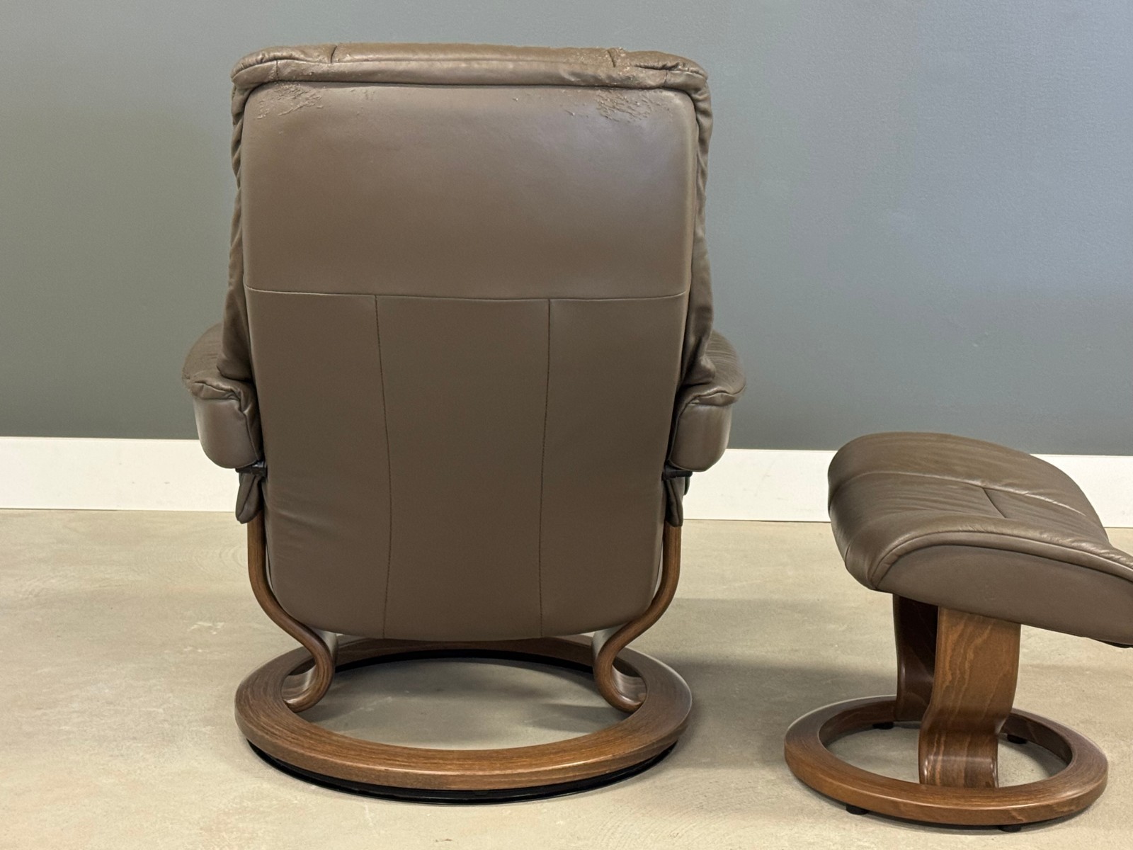 Brown Leather Ekornes Stressless Recliner and Ottoman