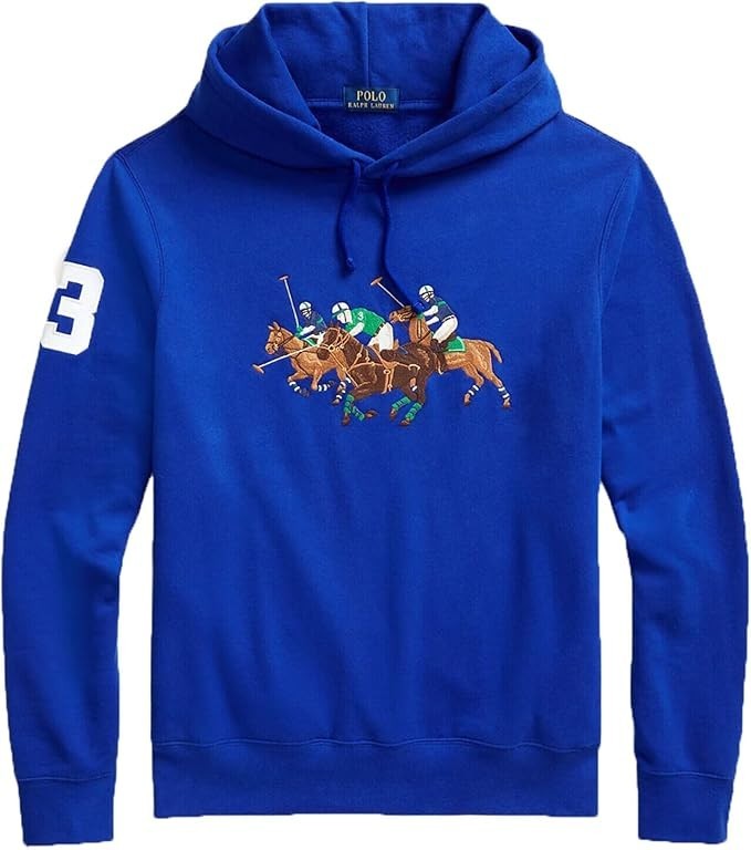 NWT Polo Ralph Laure Men's Triple Pony Fleece Hoodie Sweatshirt Size M Blue 188