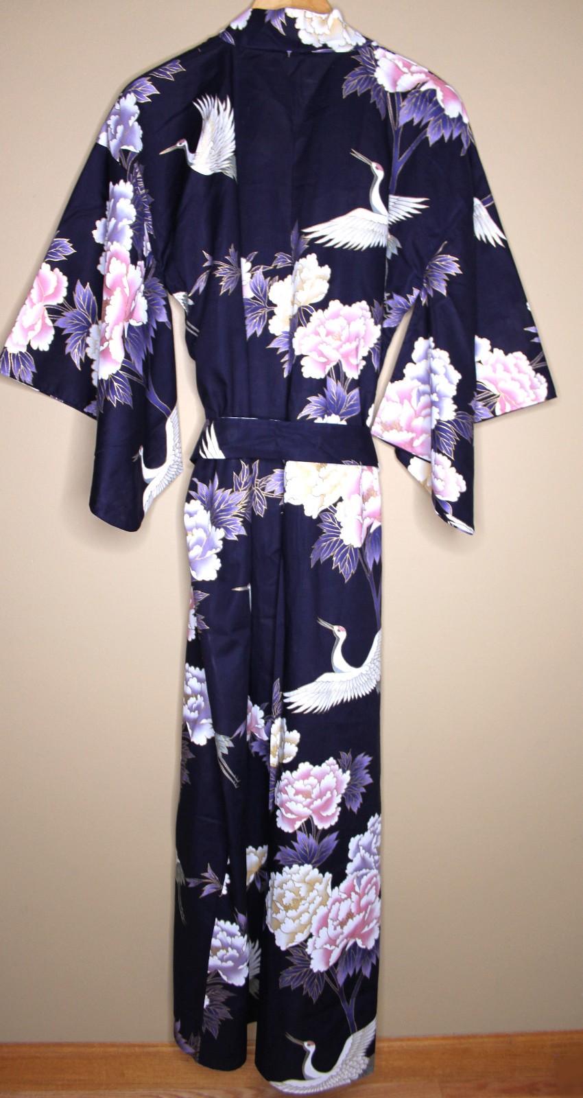 Beautiful Robe Peony Long Cotton Kimono in Navy Blue Made in Japan One Size