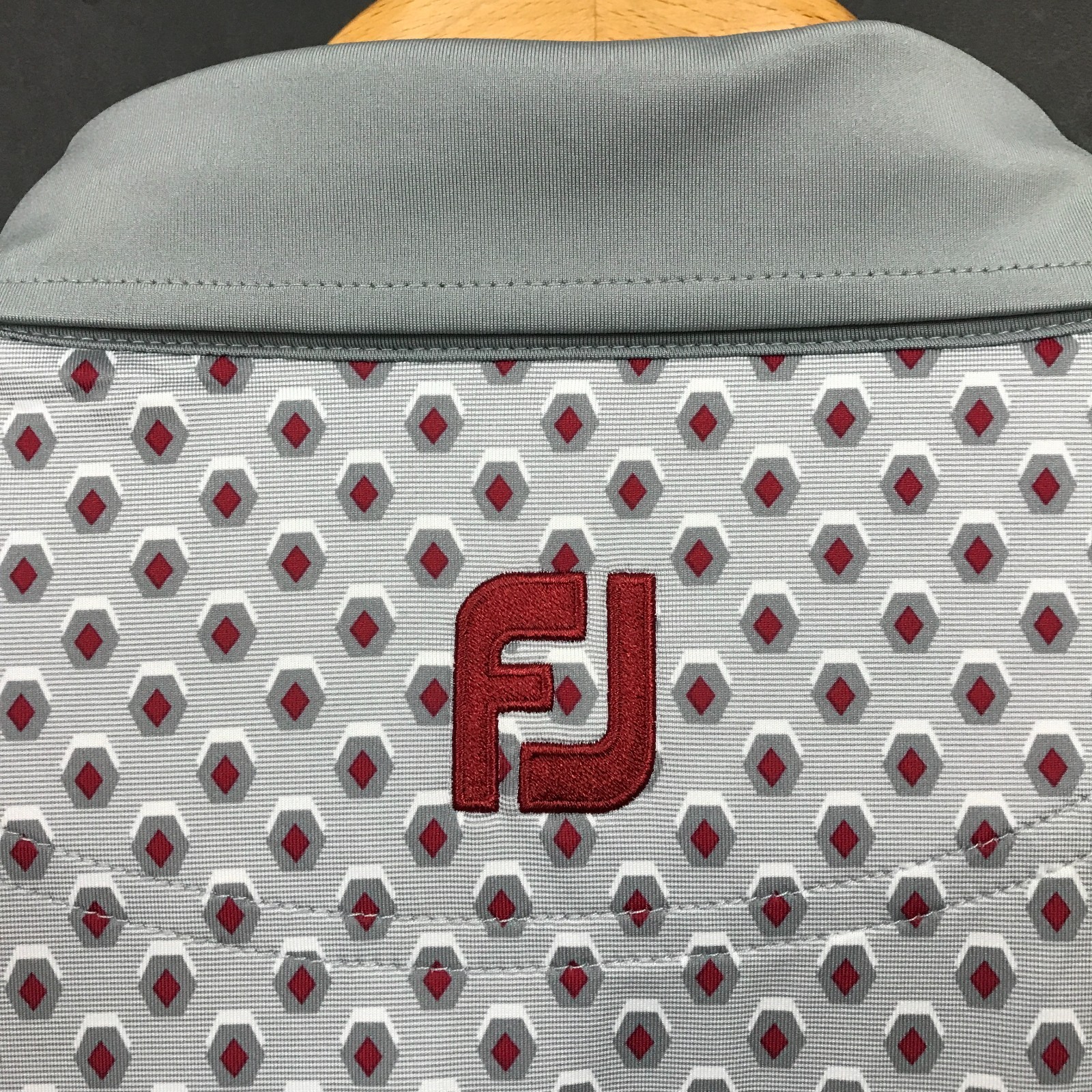 FootJoy Men's Gray Geometric Print Lisle Contrast Collar Golf Polo Shirt Size XL