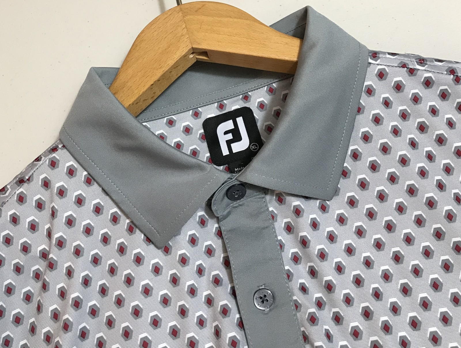 как выглядит FootJoy Mens Gray Geometric Print Lisle Contrast Collar Golf Polo Shirt Size XL фото