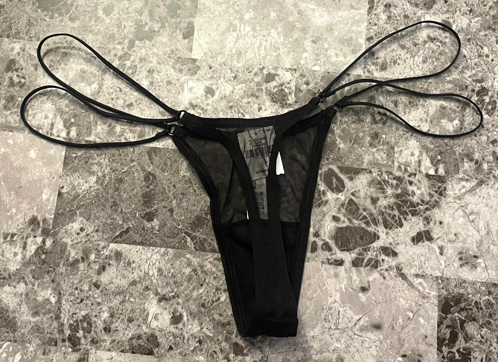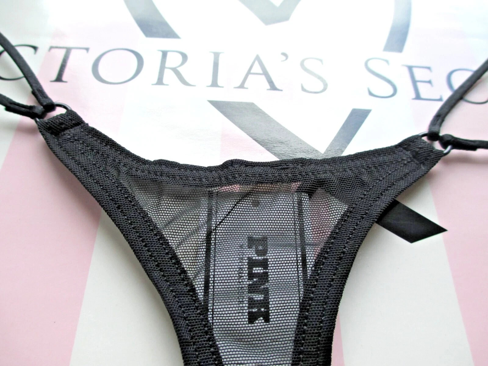 Victoria's Secret PINK - M Mesh High-Leg Strappy Micro Thong Panty Black Medium