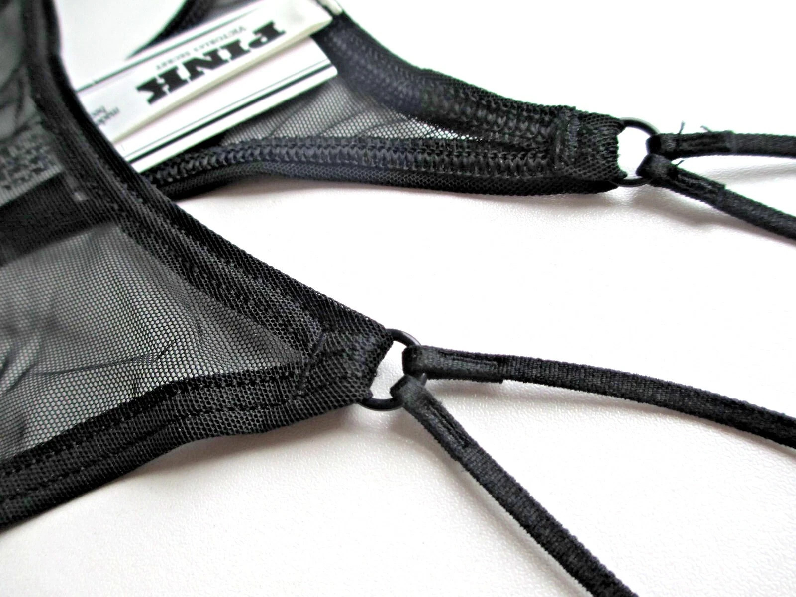 как выглядит Victorias Secret PINK - M Mesh High-Leg Strappy Micro Thong Panty Black Medium фото