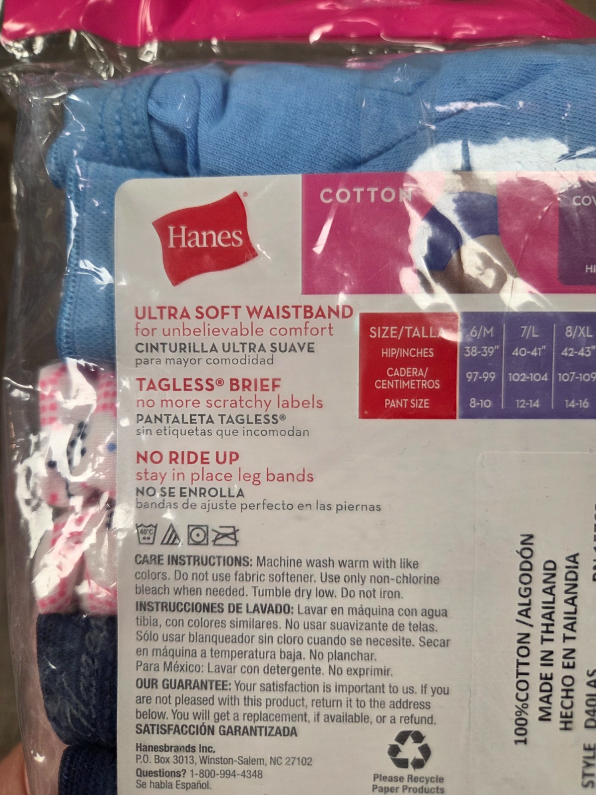 HANES Cotton Briefs Panties 3 Pack Underwear Wicking Cool Comfort Size 10