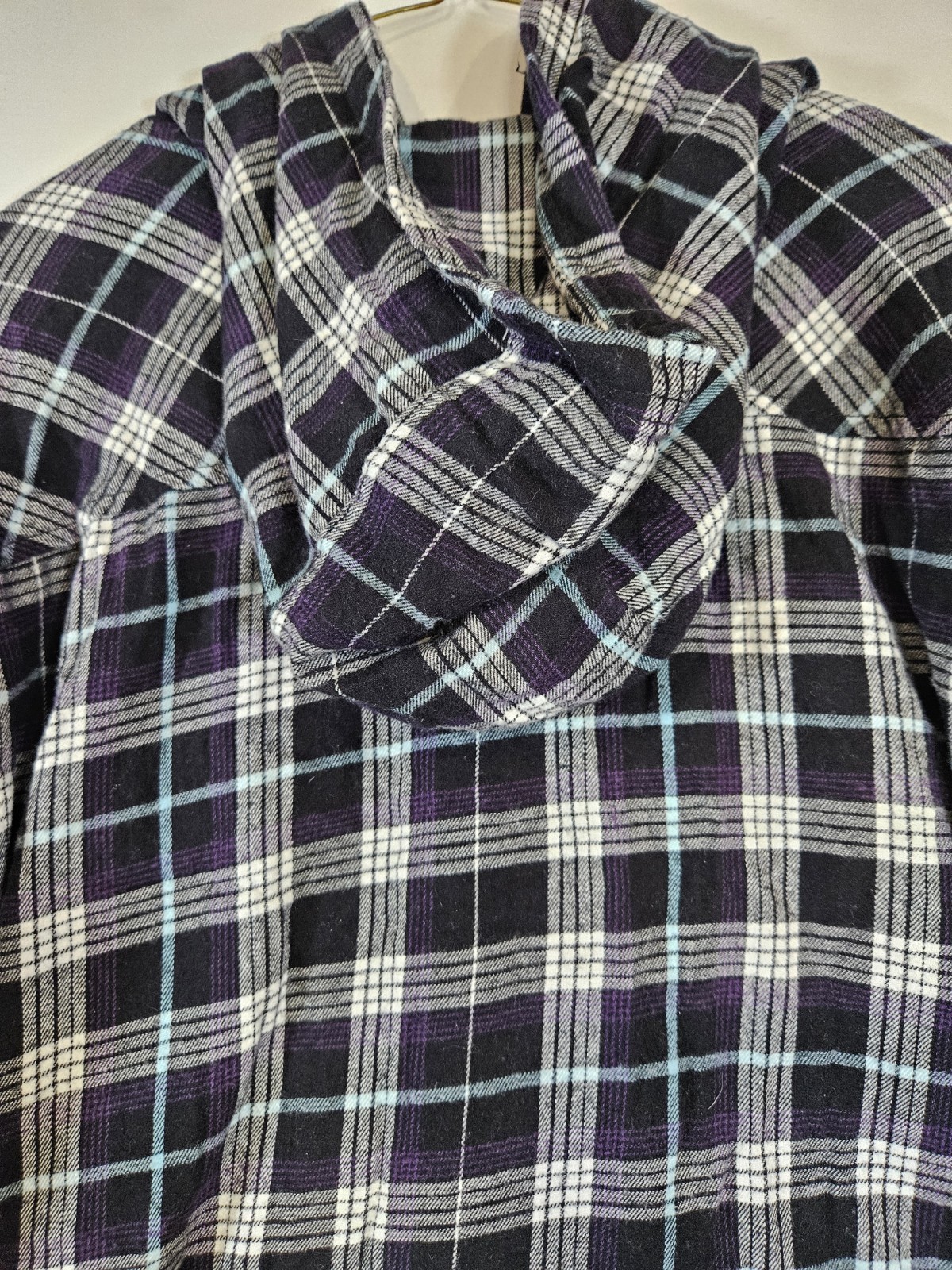 как выглядит Boston Traders Womens M Flannel Sherpa Lined Hooded Jacket Black Purple Plaid фото