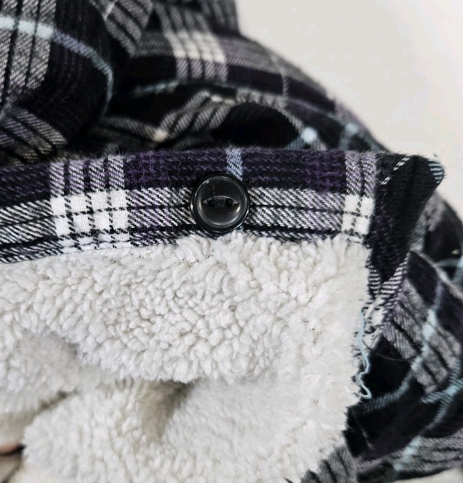 Boston Traders Womens M Flannel Sherpa Lined Hooded Jacket Black Purple Plaid
