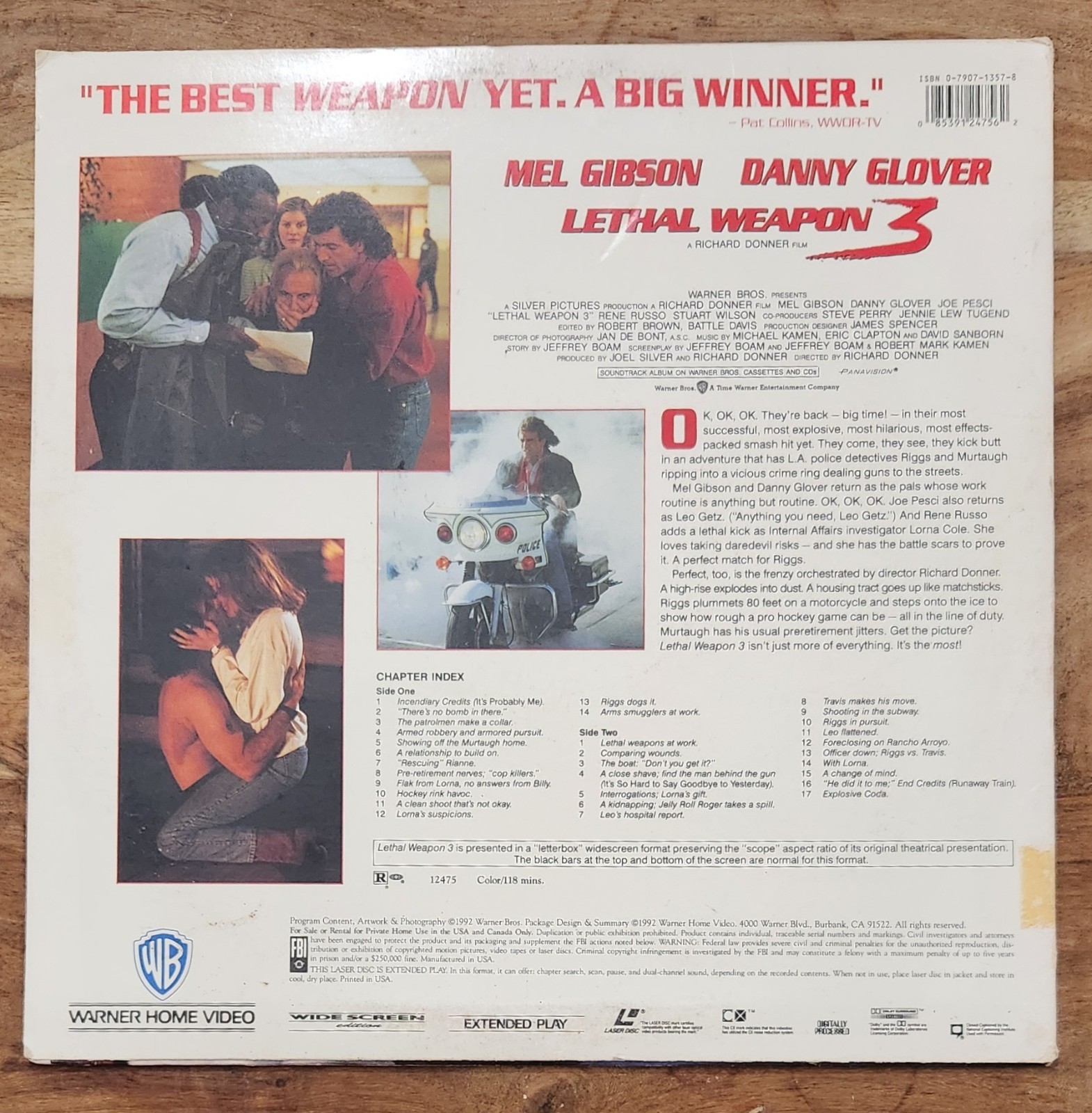 LETHAL WEAPON 3 Widescreen LASERDISC LD Mel Gibson Danny Glover Like New
