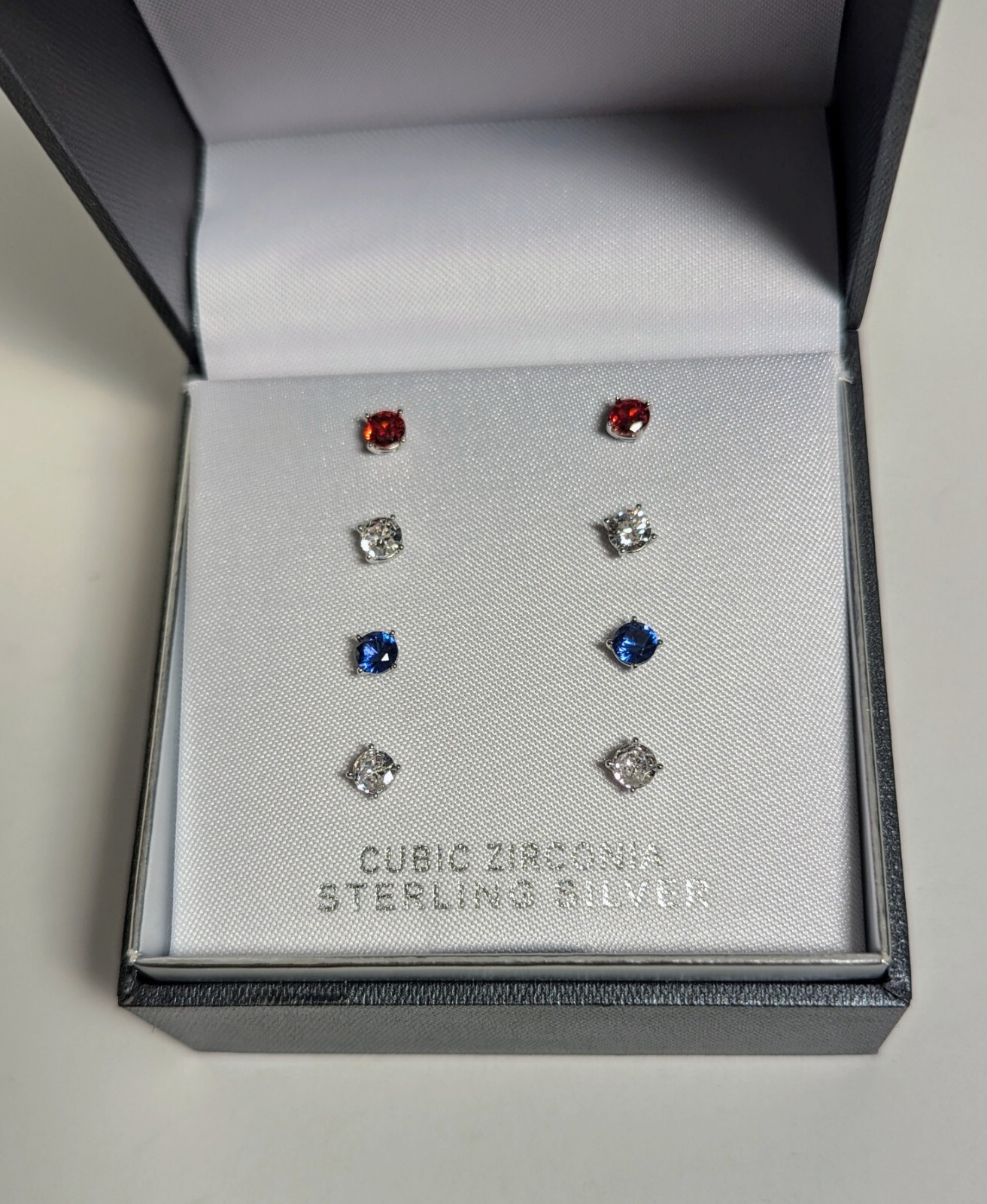 NEW Primrose Sterling Silver, Cubic Zirconia Stud Earrings Set Of 4