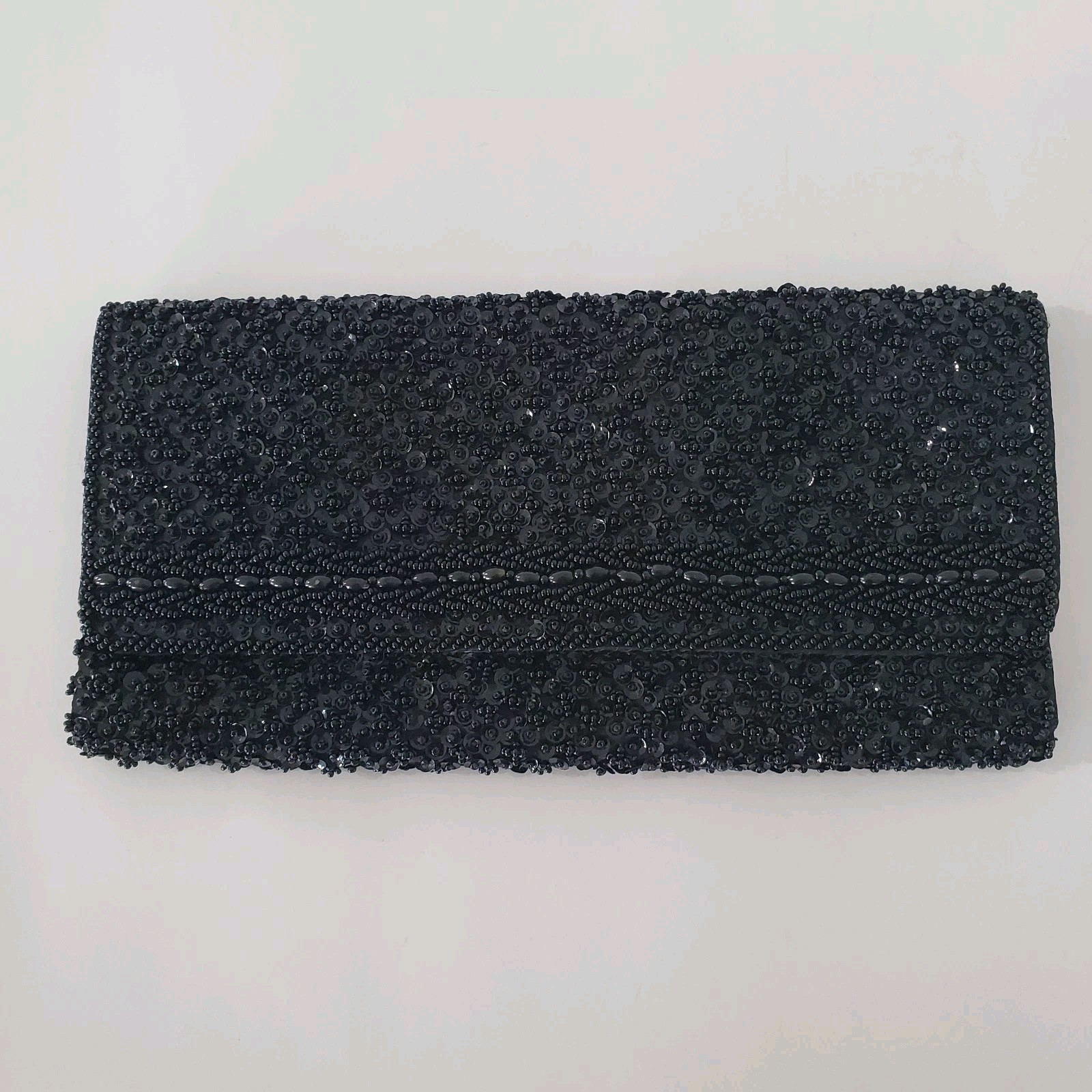 как выглядит Vtg La Regale Handmade Beaded Sequin Evening Black Clutch Bag Hong Kong Glam EUC фото