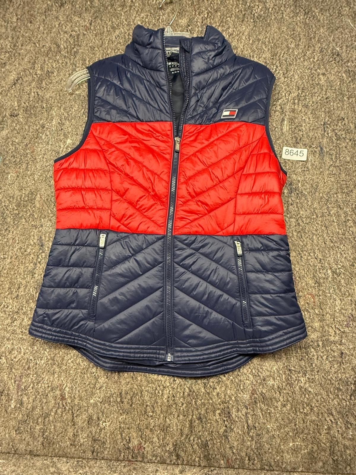 Tommy Hilfiger Womens Vest Jacket Navy Orange Full Zip Puffer Size M New OT